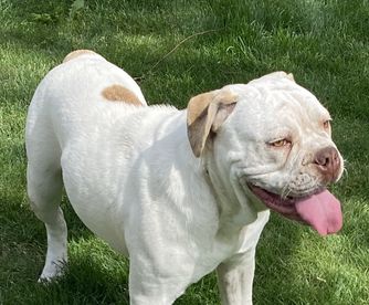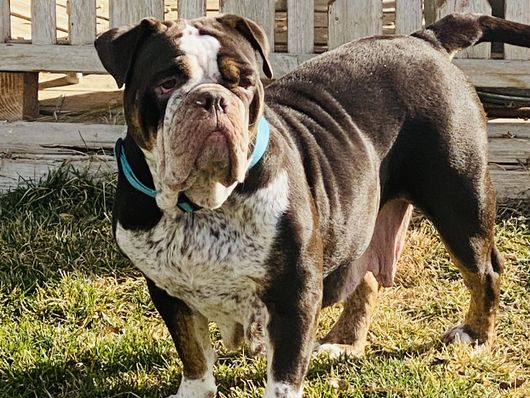 Havana is a female Bulldog. Carefully selected as a great representative of her breed, Amy decided to make her part of their program. Amy has passed Good Dog’s screening process, which involved a review of their breeding practices, environment, and the mental and physical health of their dogs.