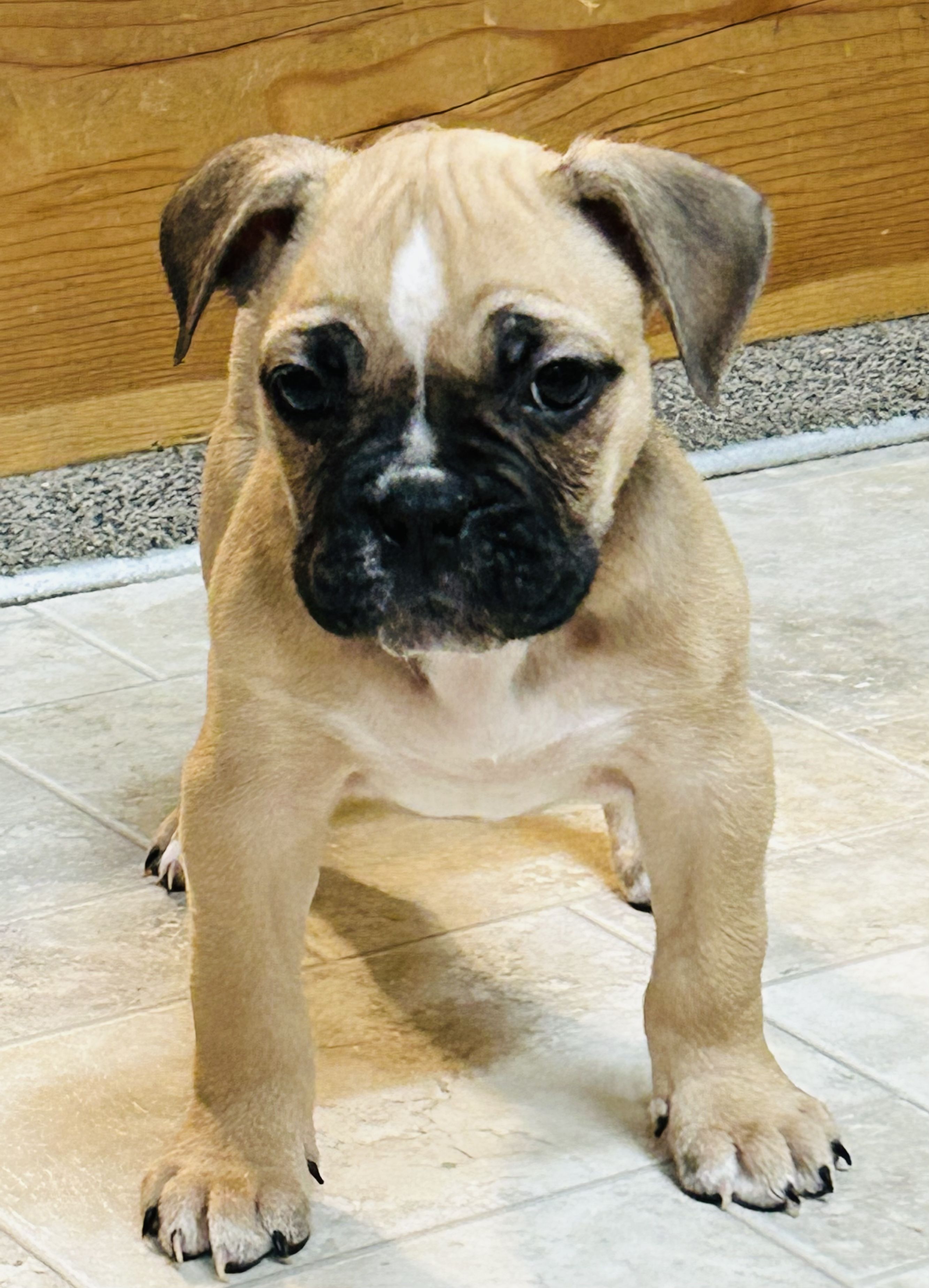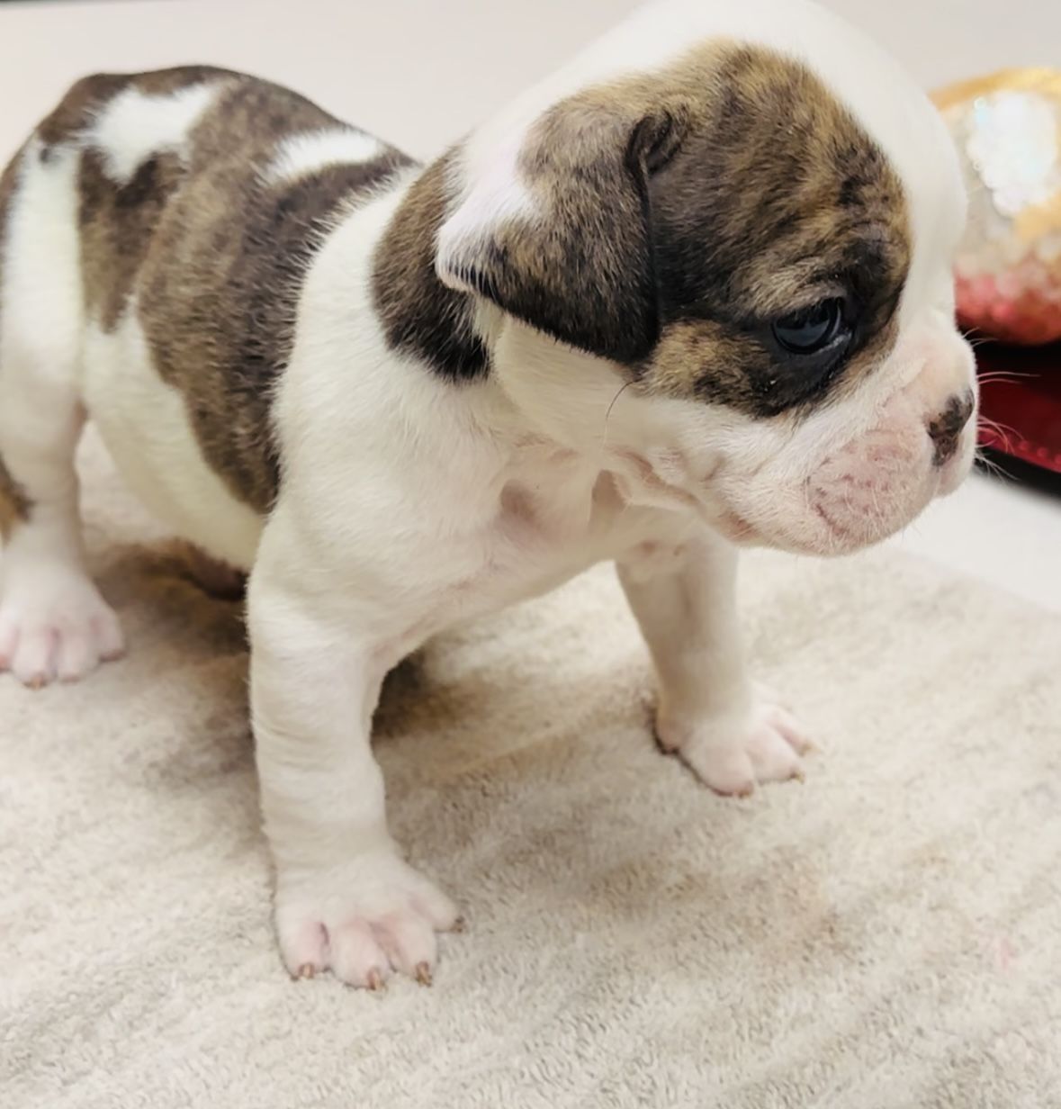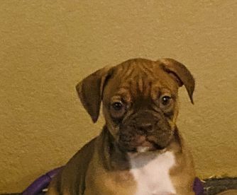 Bonnie boo is a female Bulldog. Carefully selected as a great representative of her breed, Amy decided to make her part of their program. Amy has passed Good Dog’s screening process, which involved a review of their breeding practices, environment, and the mental and physical health of their dogs.
