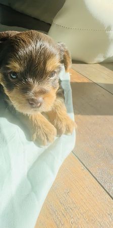 Our chocolate Yorkie (Girl 1) is our last puppy searching for her forever home.