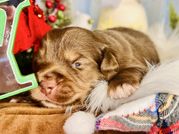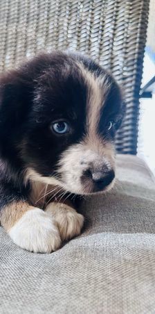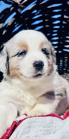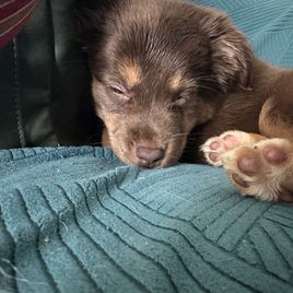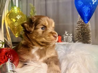 Jasper has the perfect mix of intelligence and loyalty that Mini Aussies are known for. He is highly trainable, eager to please, and loves to stay active, whether it's running, playing fetch, or enjoying a hike. He has a playful and affectionate nature, making him an excellent companion for families, active individuals, and even other pets. Jasper's alertness and natural herding instincts make him a fantastic watchdog, but he is also known for his sweet, gentle side, always ready for a cuddle after a long day of play.