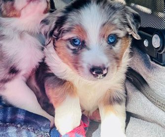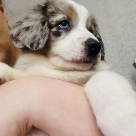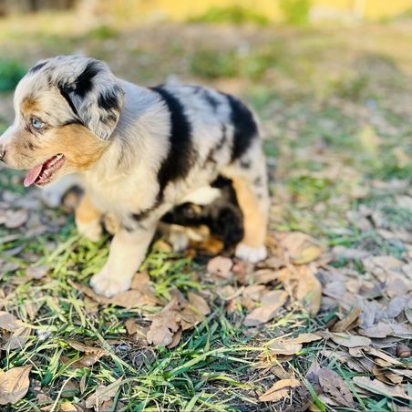 Our puppies include blue merle, black tri, red tri, and red merle. Colors will vary depending on the parent dogs.