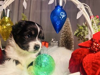 Emma is a striking Black Tri Miniature Australian Shepherd, boasting a stunning coat of jet black, rich tan, and crisp white markings. CLEAR BY PARENTAGE FOR AN ENTIRE AUSTRALIAN SHEPARD GENETIC HEALTH PANEL. What truly sets her apart, however, are her mesmerizing blue eyes. Her eyes are a captivating icy blue, sharp and vibrant, with a deep, soulful gaze that seems to sparkle with both intelligence and warmth. They are the perfect complement to her sleek, well-toned build. Her coat, soft yet resilient, glistens in the sun, and her tan points add an extra touch of elegance to her overall look. With her graceful, athletic frame and regal posture, Emma turns heads wherever she goes, leaving a lasting impression.