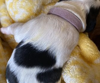 Our puppies include liver and white, liver white and tan, black white and tan, and black and white. Colors will vary depending on the parent dogs.