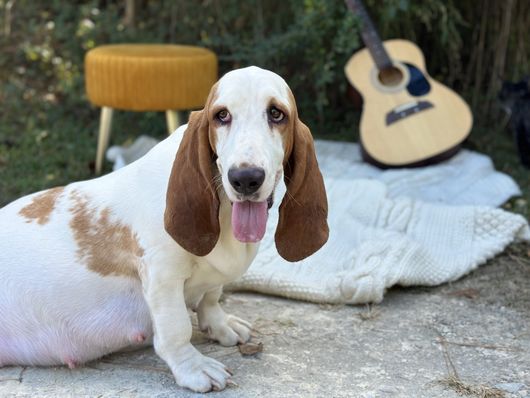 Luca is a male Basset Hound. Carefully selected as a great representative of his breed, Amy decided to make him part of their program. Amy has passed Good Dog’s screening process, which involved a review of their breeding practices, environment, and the mental and physical health of their dogs.