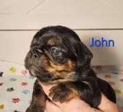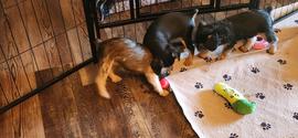 Pups are three weeks old now and growing quickly! They're walking around a little outside the whelping box, barking and playing a little with each other. Such sweeties!