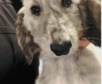 Scarlett is a female Afghan Hound. Carefully selected as a great representative of her breed, Tara decided to make her part of their program. Tara has passed Good Dog’s screening process, which involved a review of their breeding practices, environment, and the mental and physical health of their dogs.