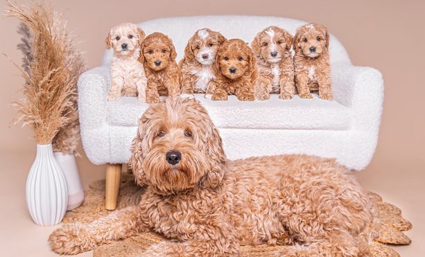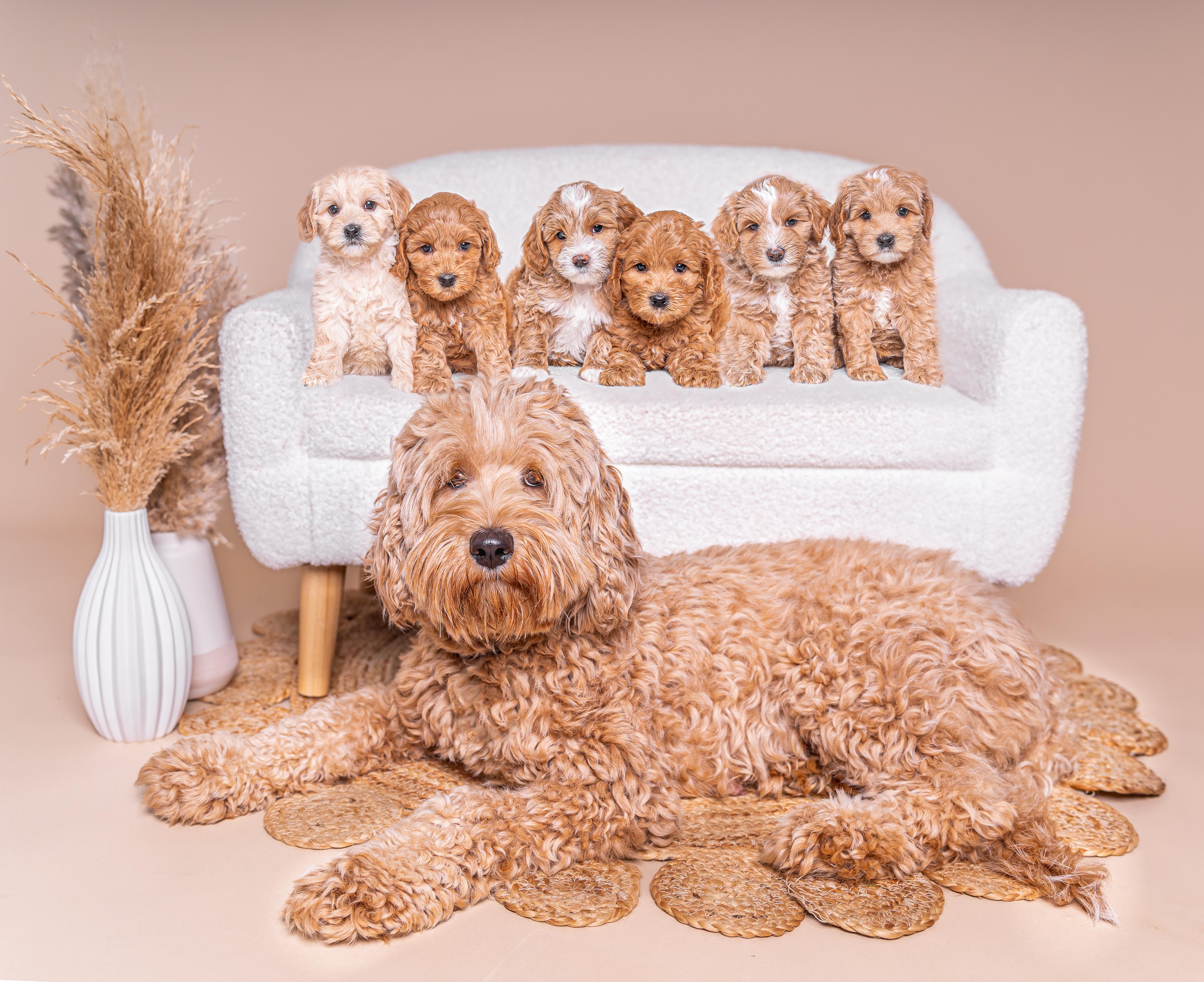 Our puppies include miniature and medium sizes. Sizes will vary depending on the parent dogs.