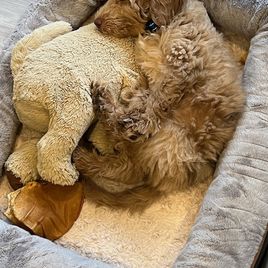 Fryler is a male Australian Labradoodle. Carefully selected as a great representative of his breed, Lauren decided to make him part of their program. Lauren has passed Good Dog’s screening process, which involved a review of their breeding practices, environment, and the mental and physical health of their dogs.