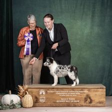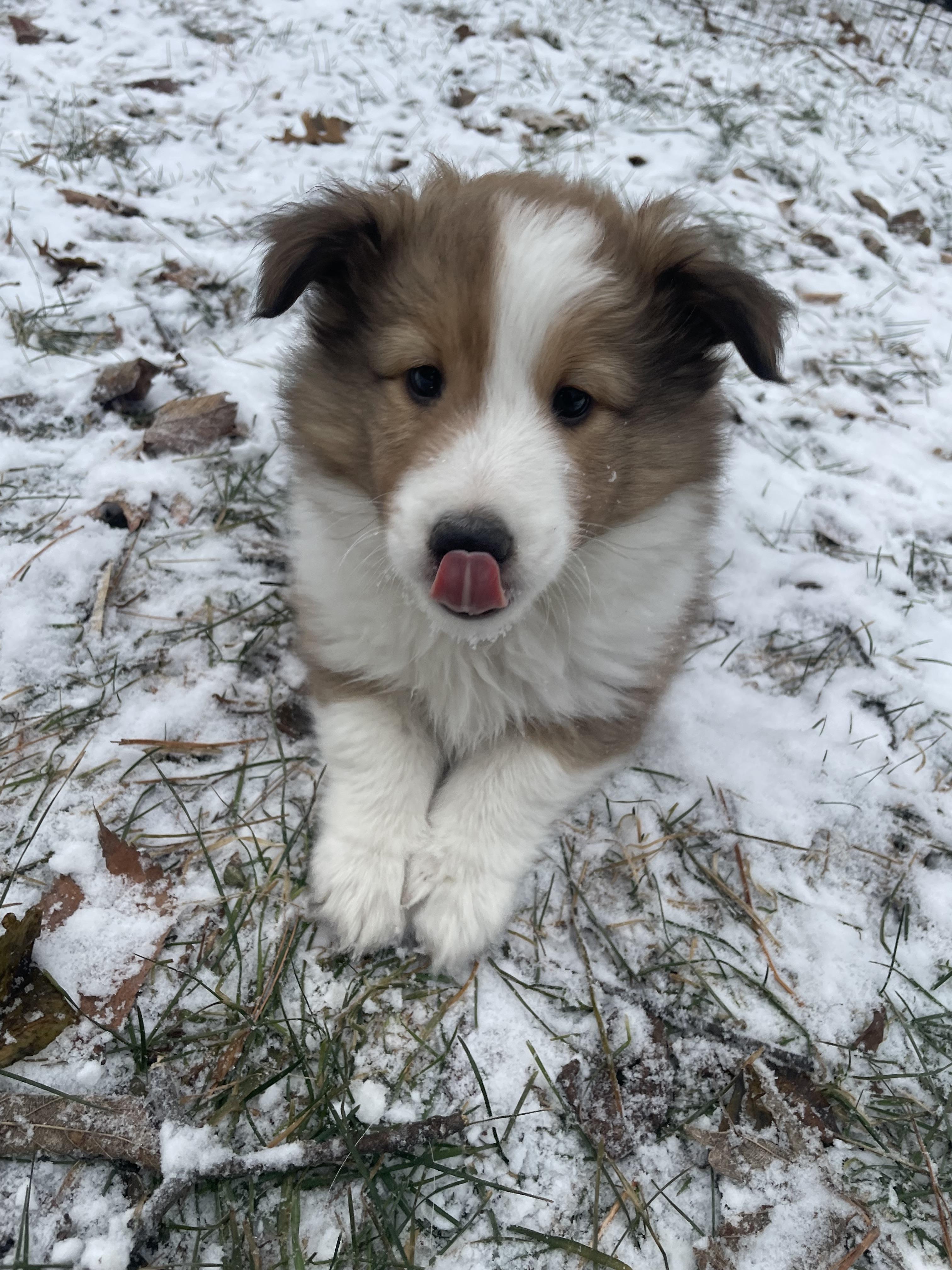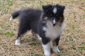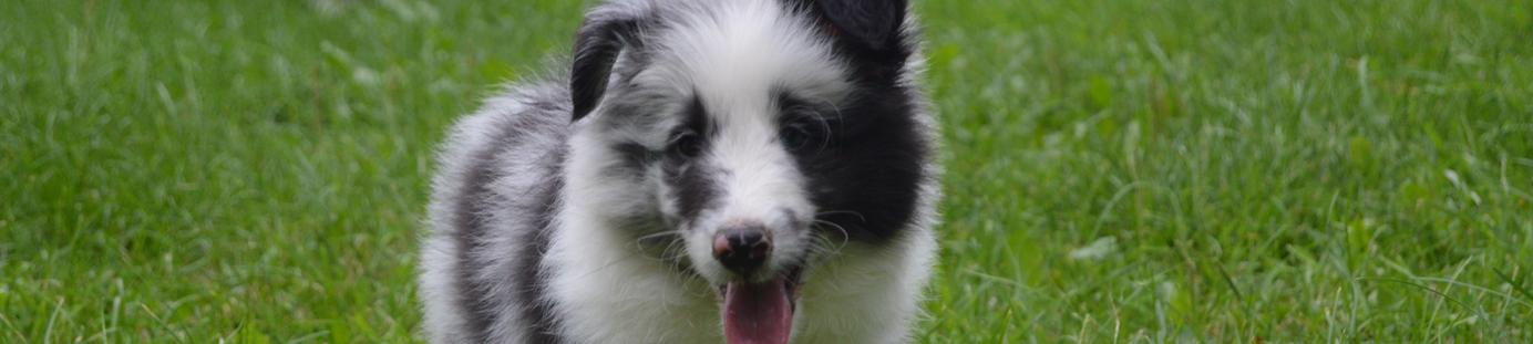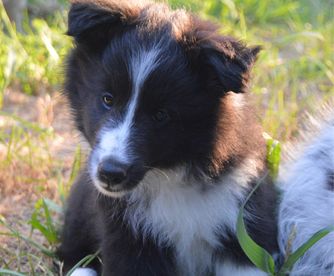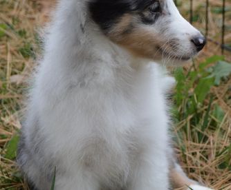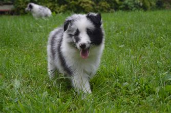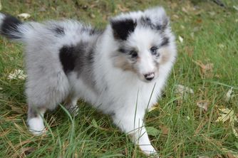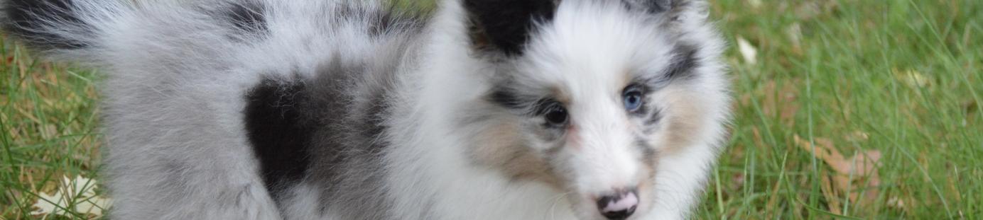 Our puppies include sable merle and white, sable and white, blue merle white and tan, blue merle and white, black white and tan, and black and white. Colors will vary depending on the parent dogs.