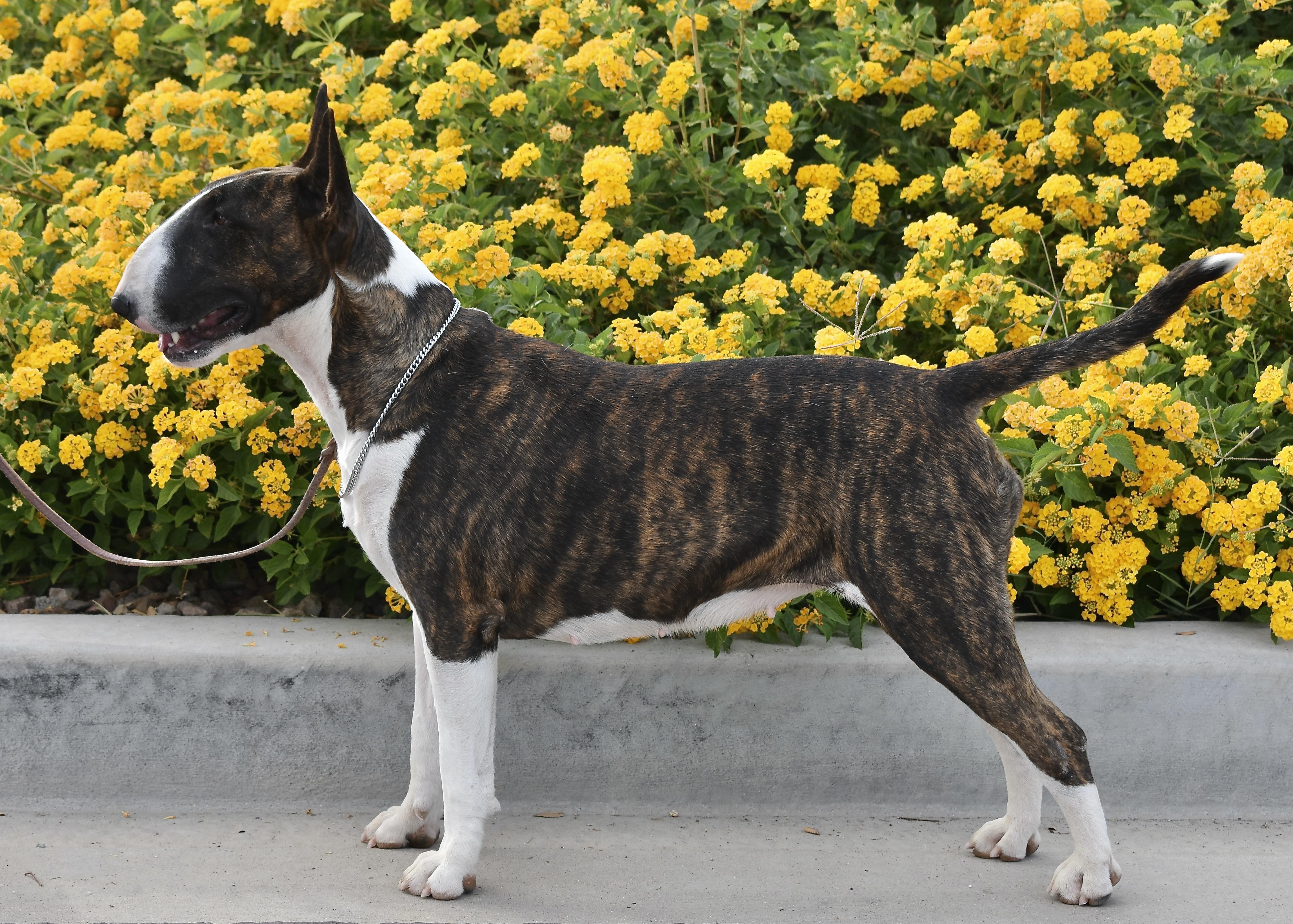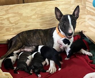 I'm Kim B., the breeder behind Sunny Sky Bull Terriers located in Gilbert, AZ. As a Preservation Breeder of Bull Terriers my commitment is to maintain the integrity of the Bull Terrier breed by utilizing only health-tested, quality breeding dogs that conform to the AKC standard of the breed. My goal is to bring into this world bull terriers that will excel in the show ring, performance ring and the home! I currently only sell to homes in Arizona and require personal pick up.