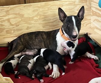 I'm Kim B., the breeder behind Sunny Sky Bull Terriers located in Gilbert, AZ. As a Preservation Breeder of Bull Terriers my commitment is to maintain the integrity of the Bull Terrier breed by utilizing only health-tested, quality breeding dogs that conform to the AKC standard of the breed. My goal is to bring into this world bull terriers that will excel in the show ring, performance ring and the home!