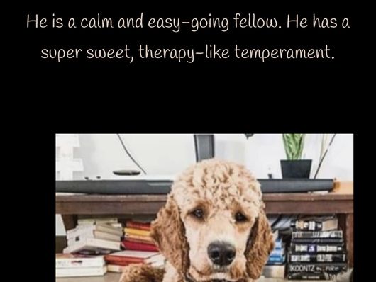 Archie is a male Poodle. Carefully selected as a great representative of his breed, Brenda decided to make him part of their program. Brenda has passed Good Dog’s screening process, which involved a review of their breeding practices, environment, and the mental and physical health of their dogs.