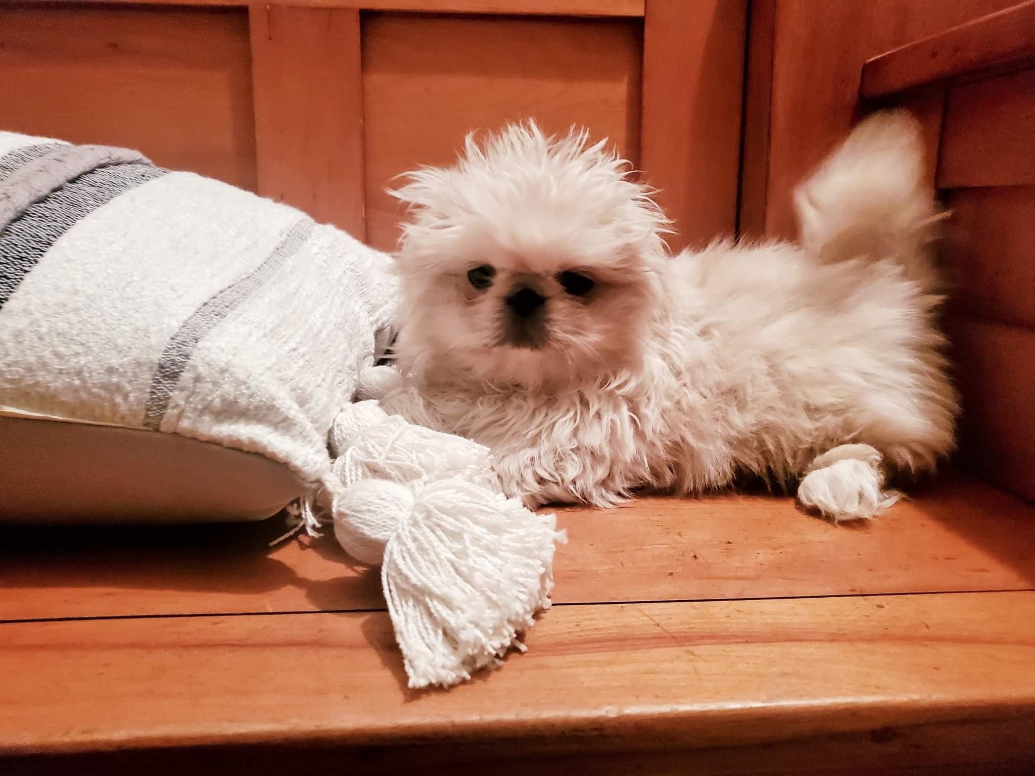 Kamo is a male Pekingese. Carefully selected as a great representative of his breed, Julie decided to make him part of their program. Julie has passed Good Dog’s screening process, which involved a review of their breeding practices, environment, and the mental and physical health of their dogs.