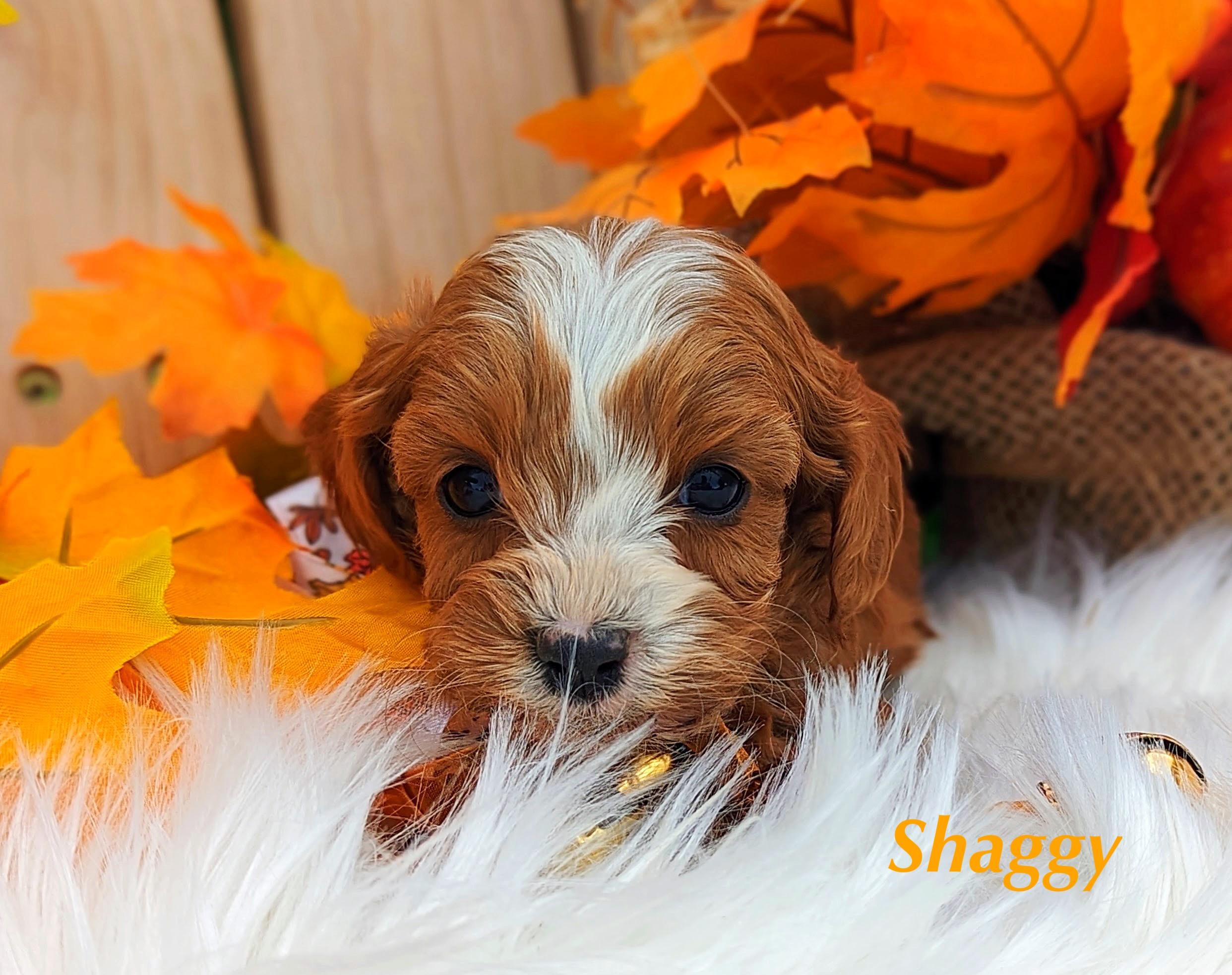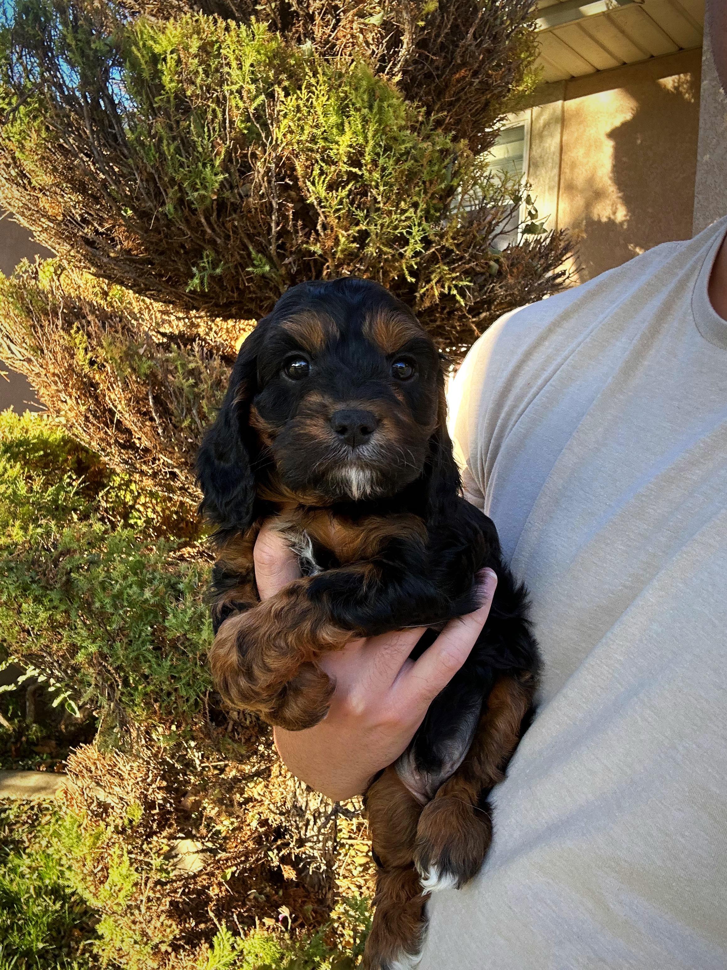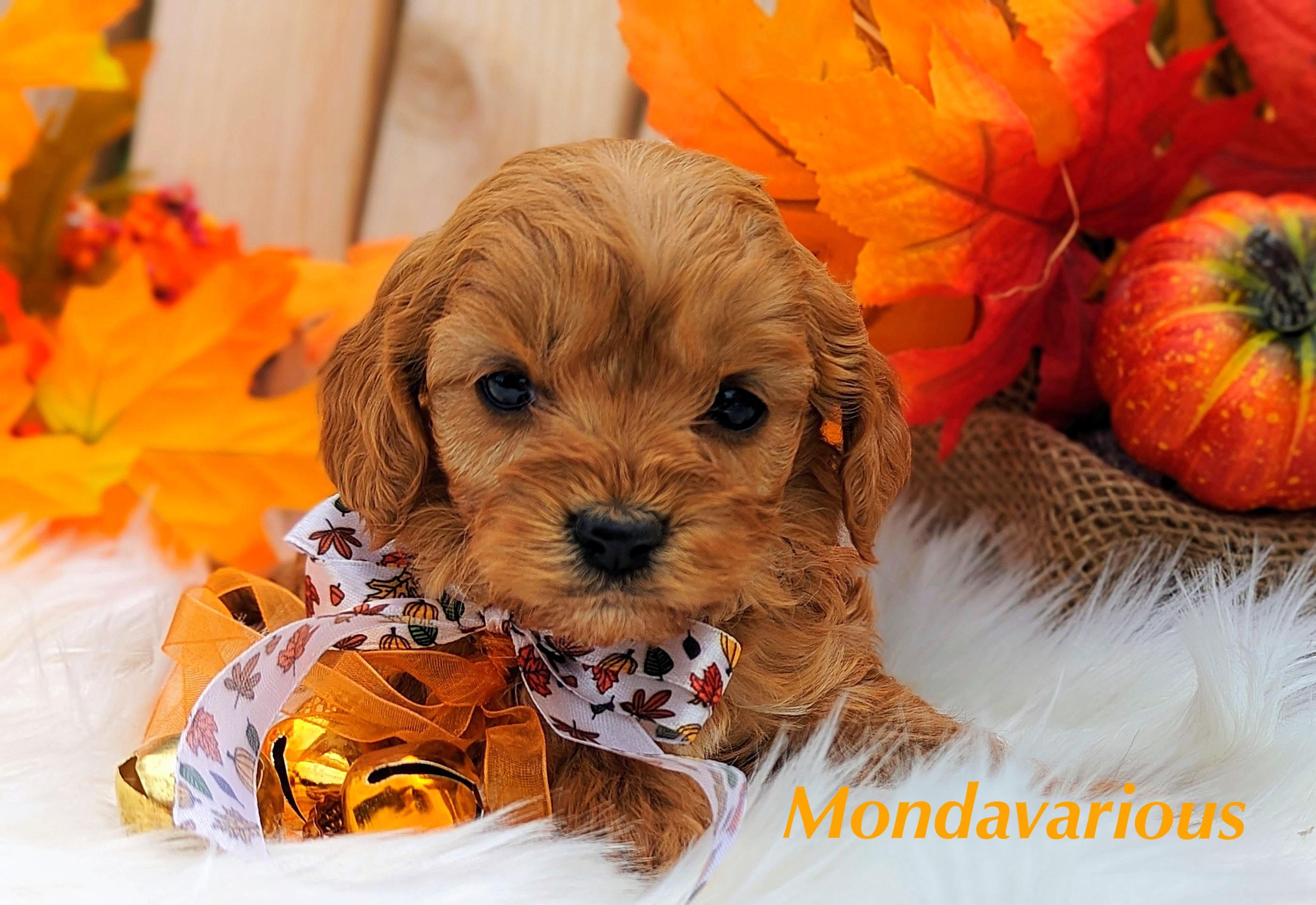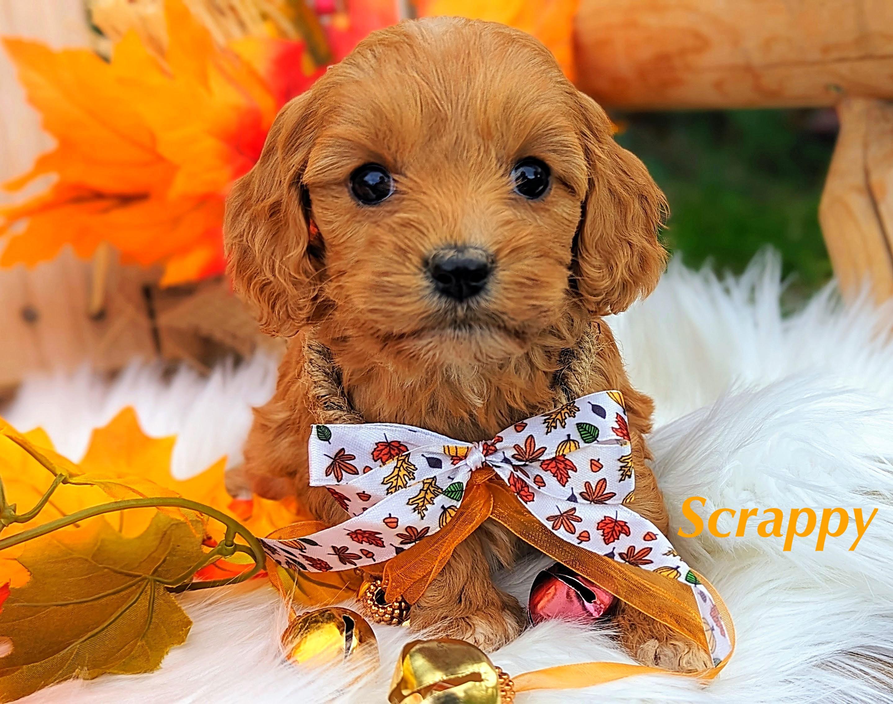 Our Cavapoo puppies include apricot, tri-color, red, black and white, and black and tan. Cockapoo puppies include red, red and white, cream, buff, brown, and black and tan. Colors will vary depending on the parent dogs.