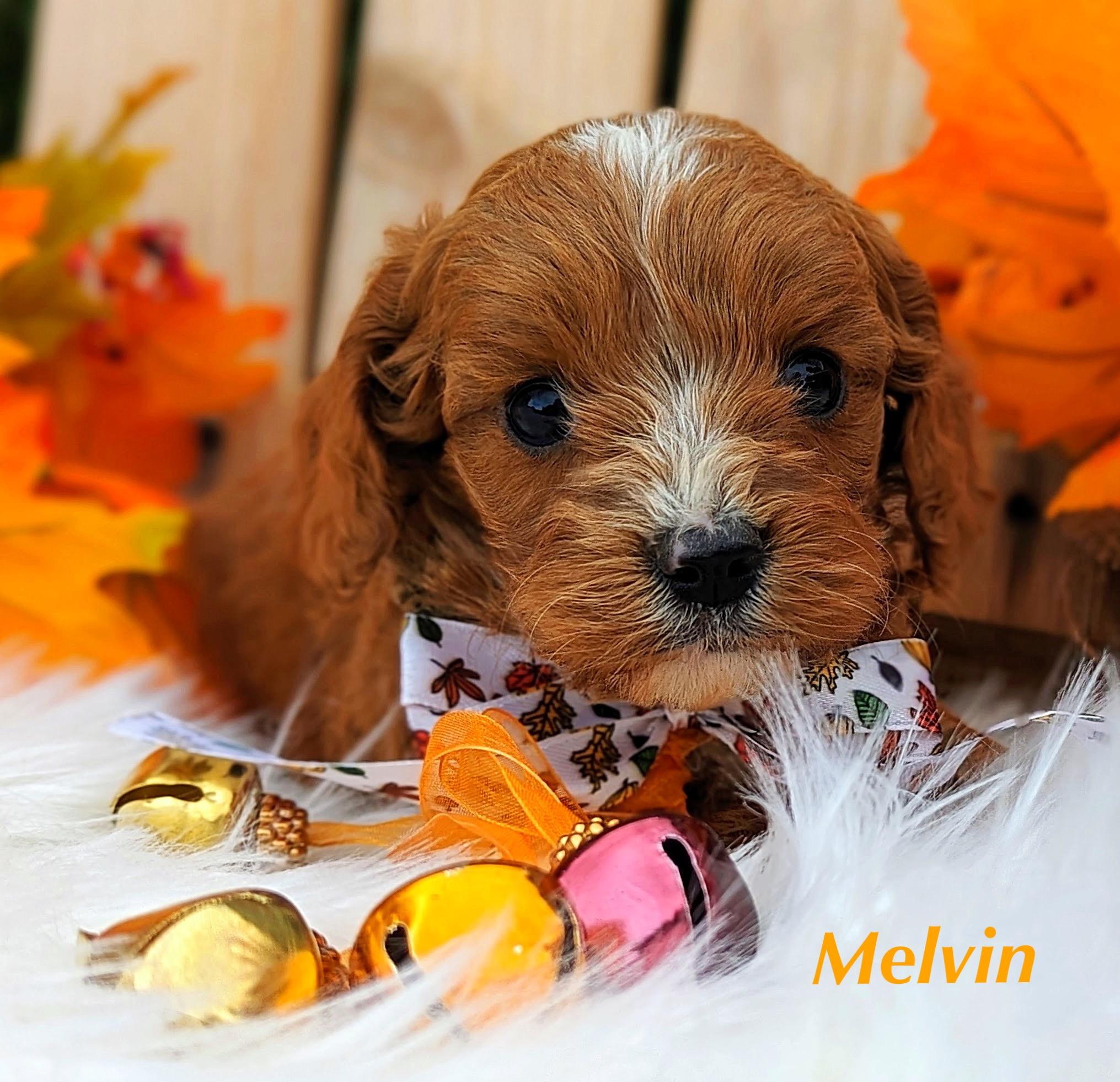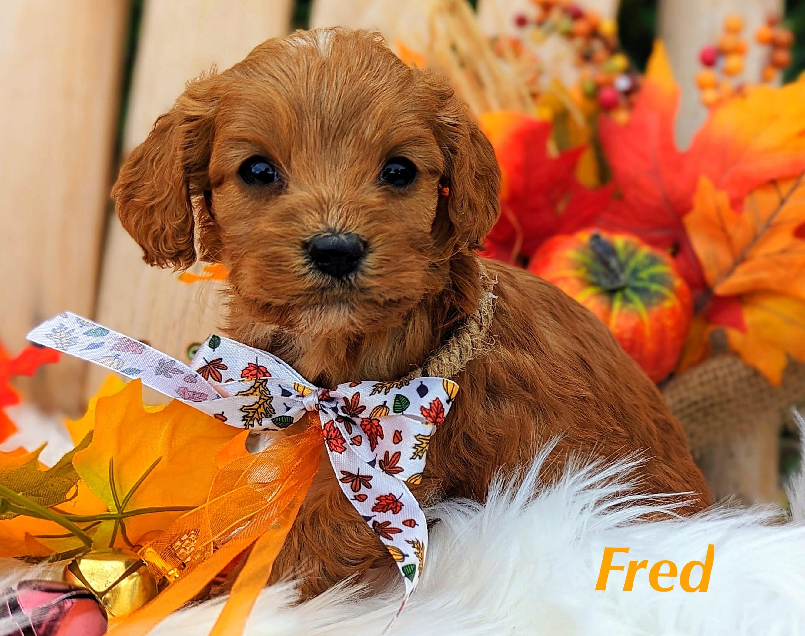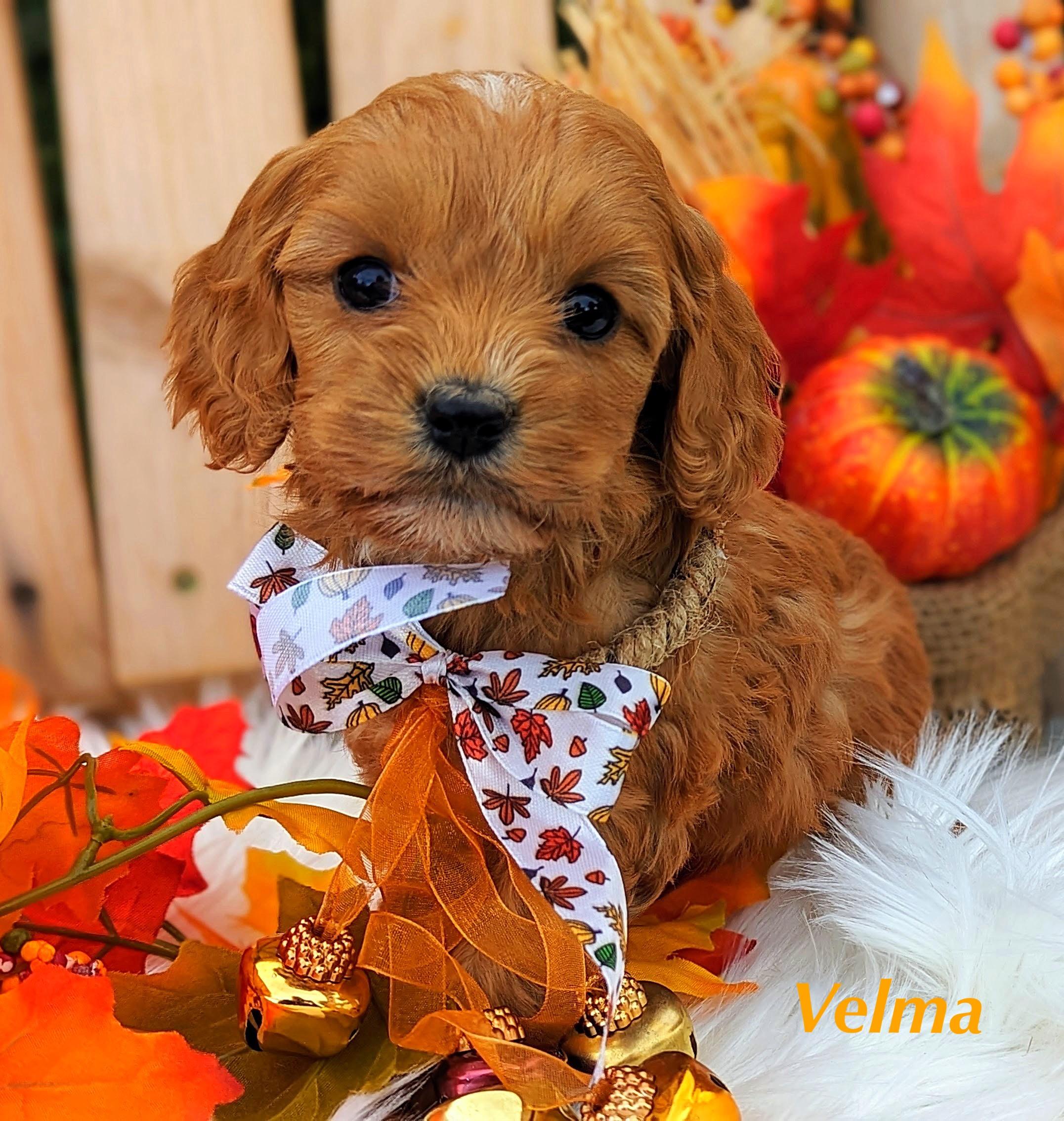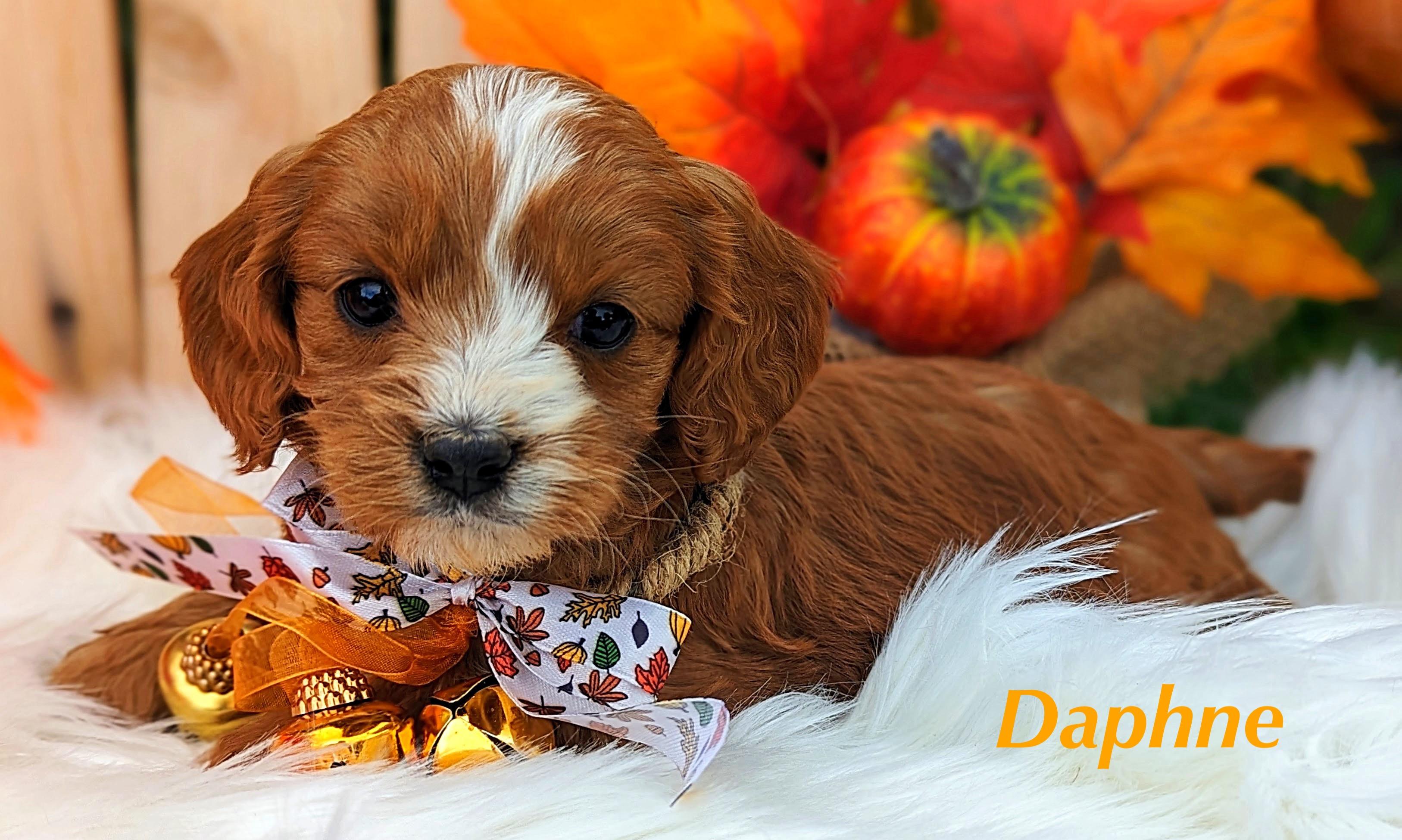 Our Cavapoo puppies include apricot, tri-color, red, black and white, and black and tan. Cockapoo puppies include red, red and white, cream, buff, brown, and black and tan. Colors will vary depending on the parent dogs.