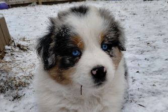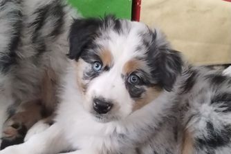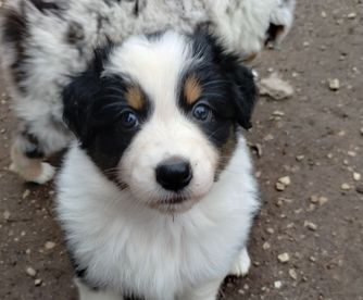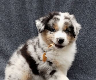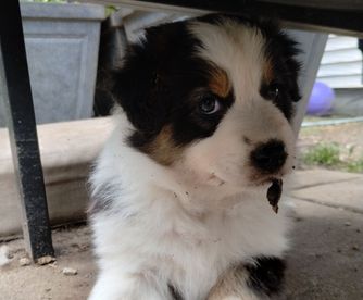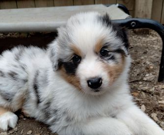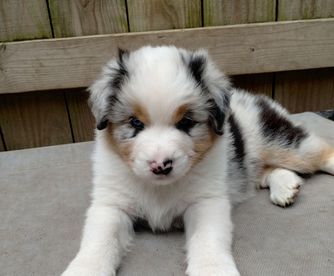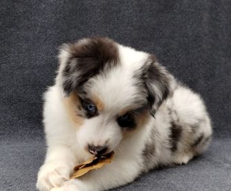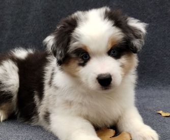 Our Miniature American Shepherd puppies include red & white, red tri-color, black & white, black tri, red merle, and blue merle. Australian Shepherd puppies include red & white, black & white, red merle, blue merle, black tri-color, and red tri-color. Colors will vary depending on the parent dogs.