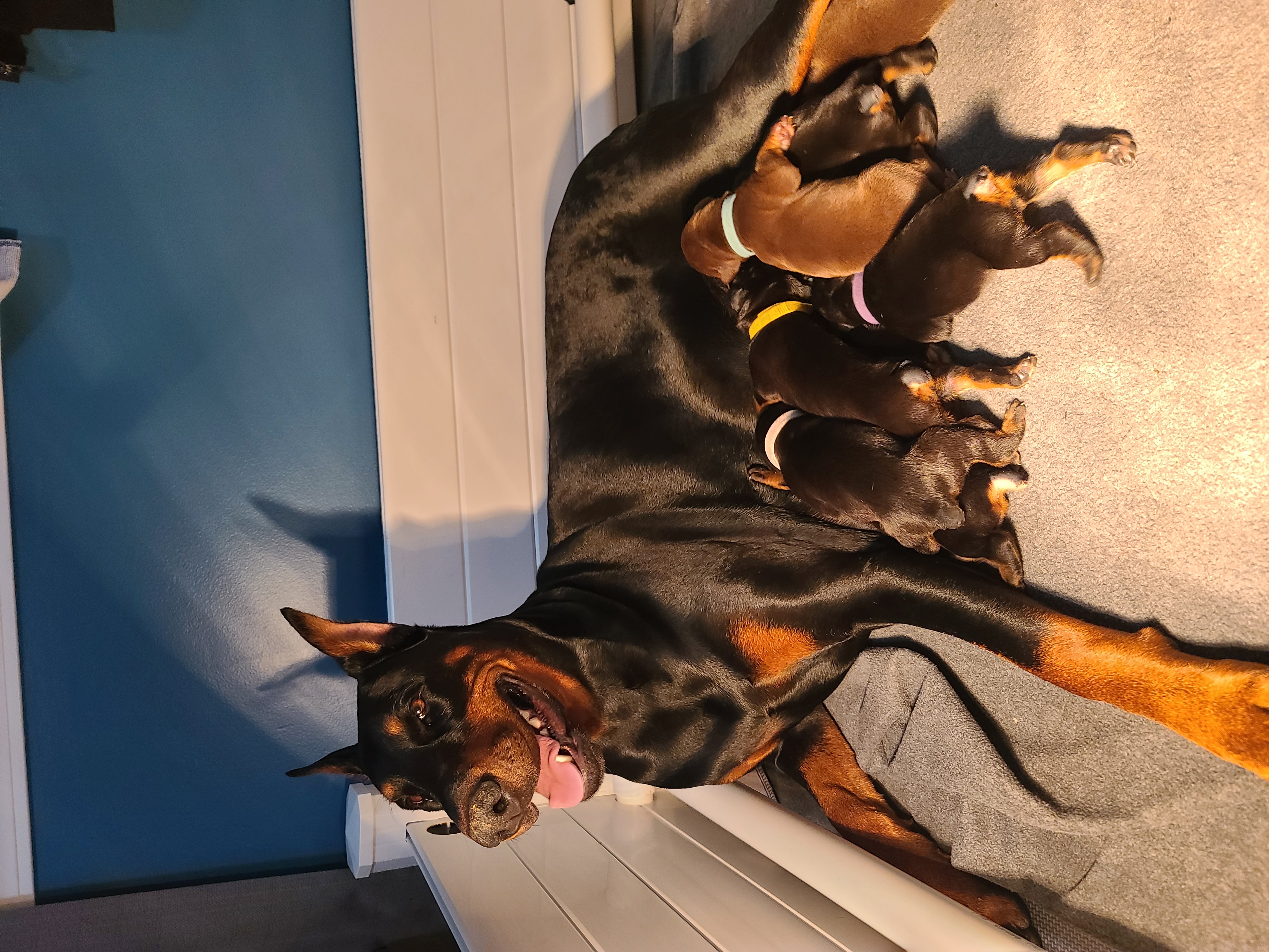I'm Emma T., the breeder behind Sunset Acres Dobermans located in Ohio. We are huge animal lovers and have a special place in our hearts for our dogs. We want to provide top-quality beloved companions. In order to produce the best quality puppies, we breed with a focus on health, temperament, and structure. We are passionate about Dobermans, and our love for these dogs shines through in every aspect of our breeding program.