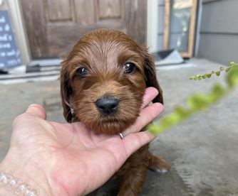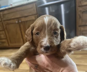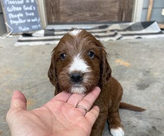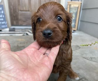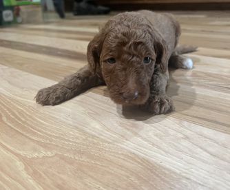 Molasses is a female Irish Doodle over 6 years old. Carefully selected as a great representative of her breed, Megan decided to make her part of their program. Megan has passed Good Dog’s screening process, which involved a review of their breeding practices, environment, and the mental and physical health of their dogs.