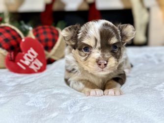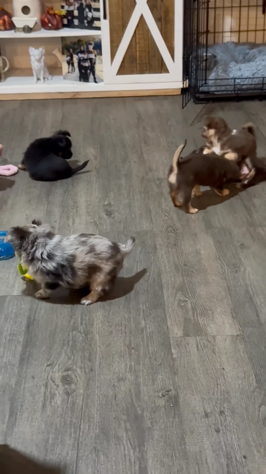 Our puppies include merle, chocolate, blue merle, black and tan, cream and white, chocolate and tan, and black and white. Colors will vary depending on the parent dogs.