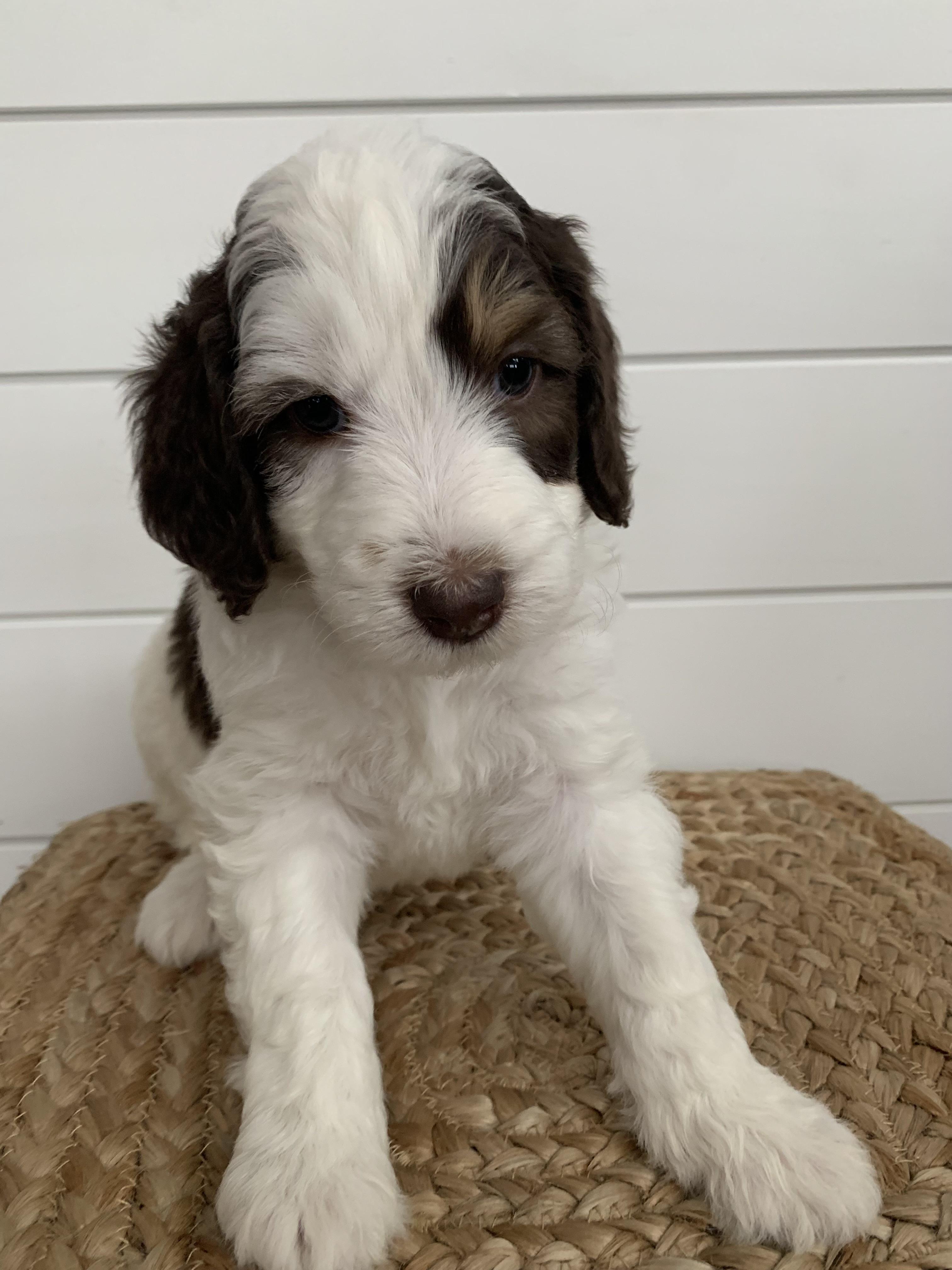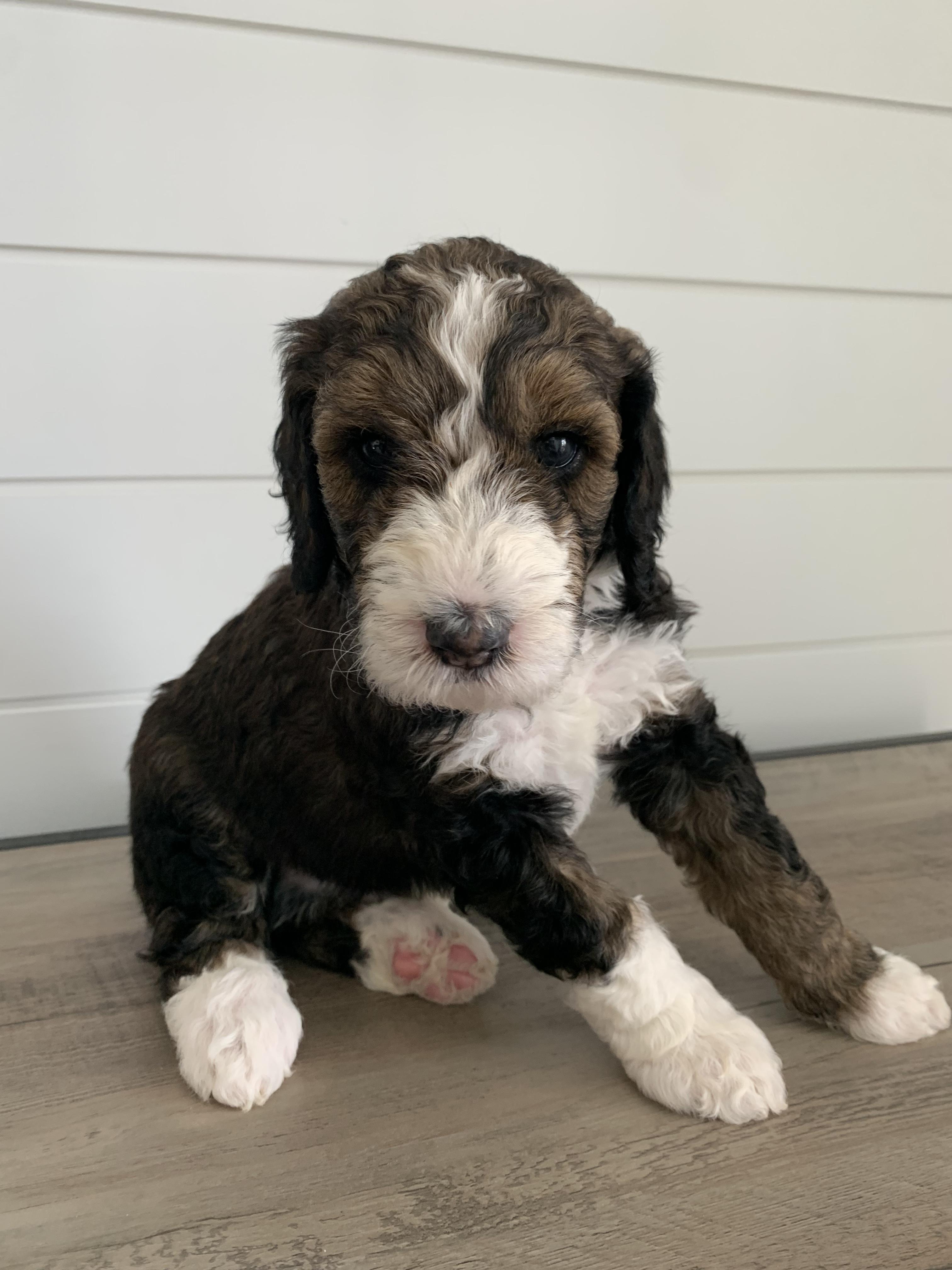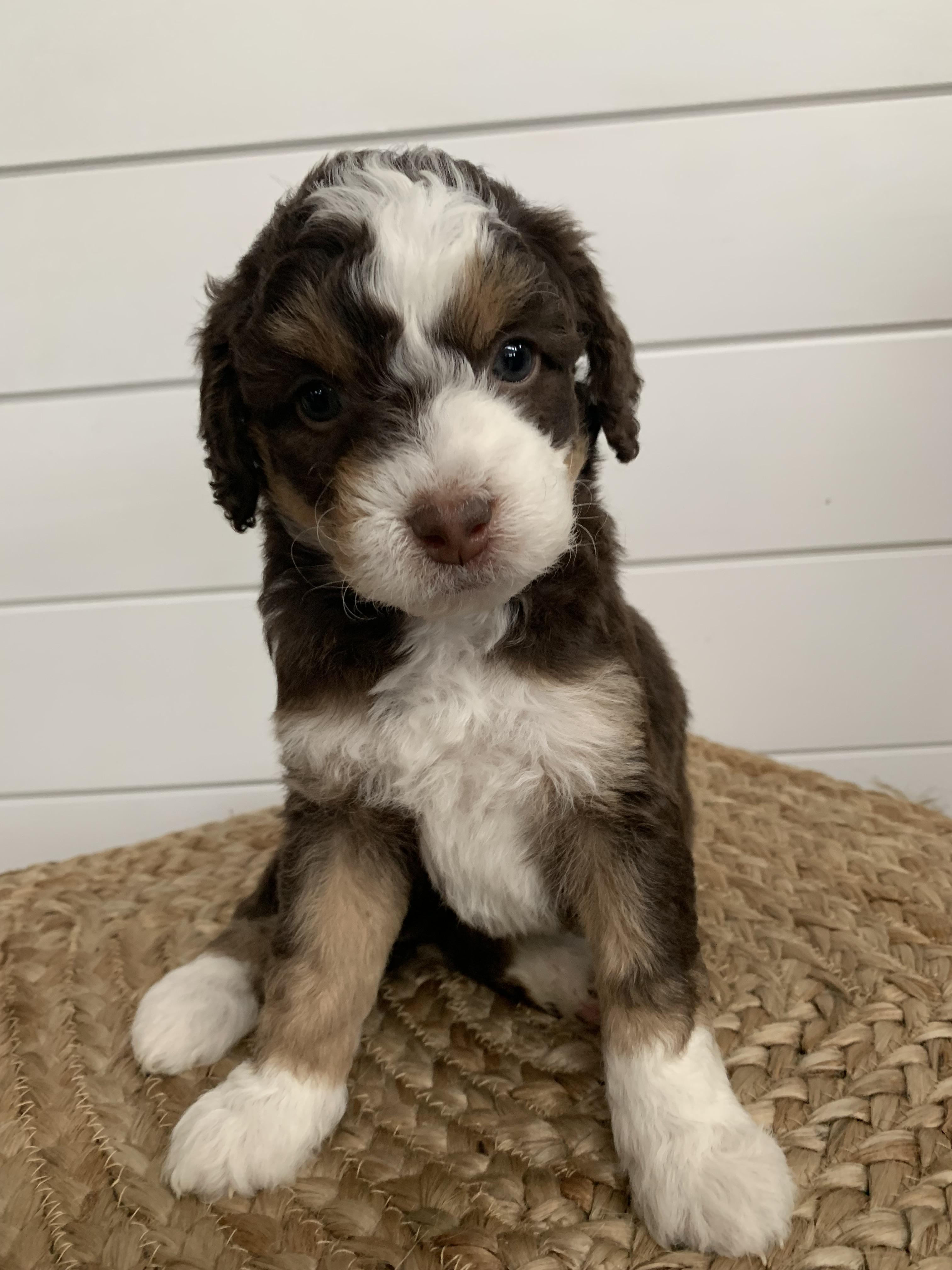 Our Bernedoodle puppies include brown and white, brown, sable, black and white, tri-color, phantom, blue merle, and merle. Poodle puppies include blue, brown, parti, and phantom. Colors will vary depending on the parent dogs.