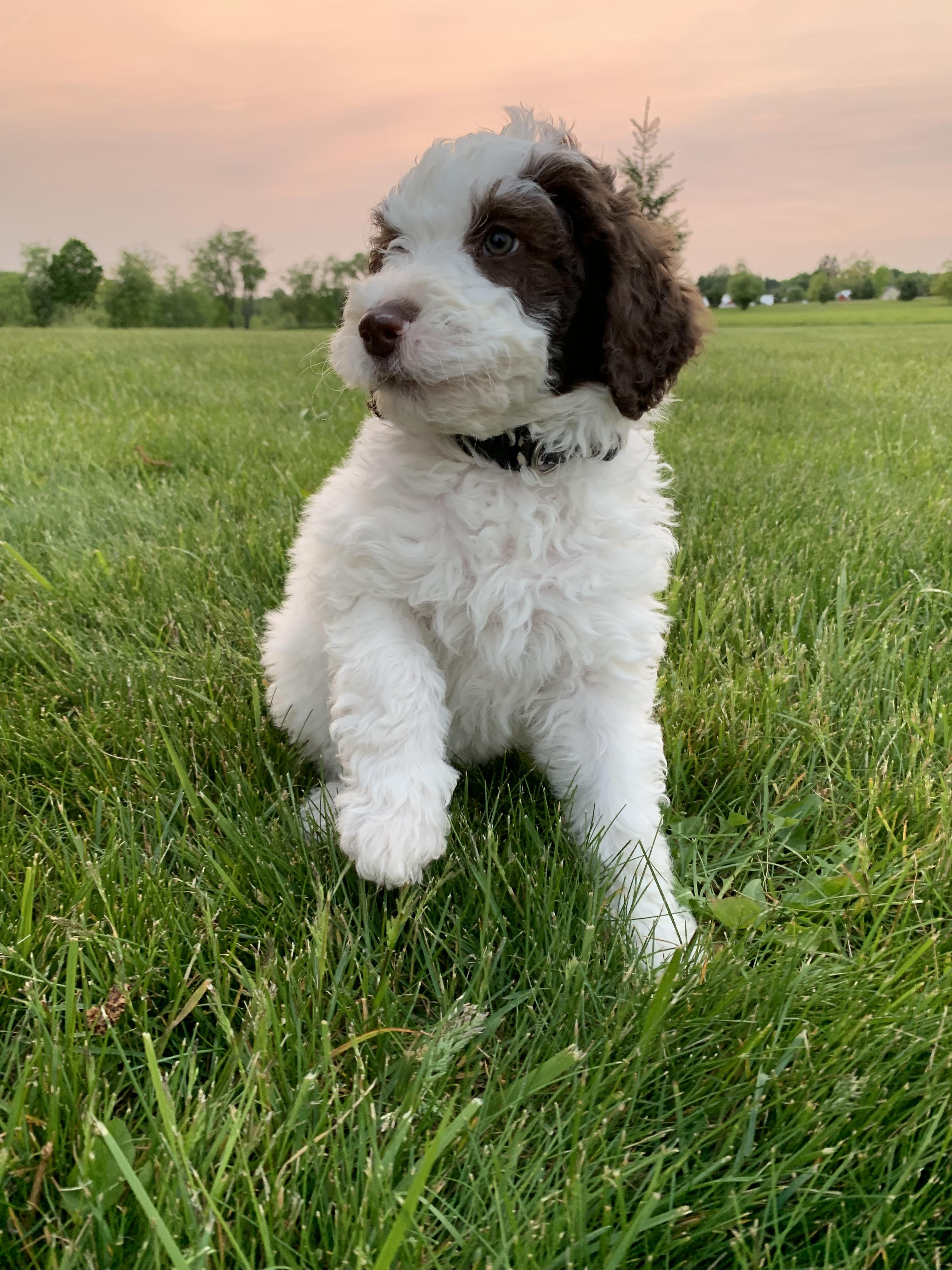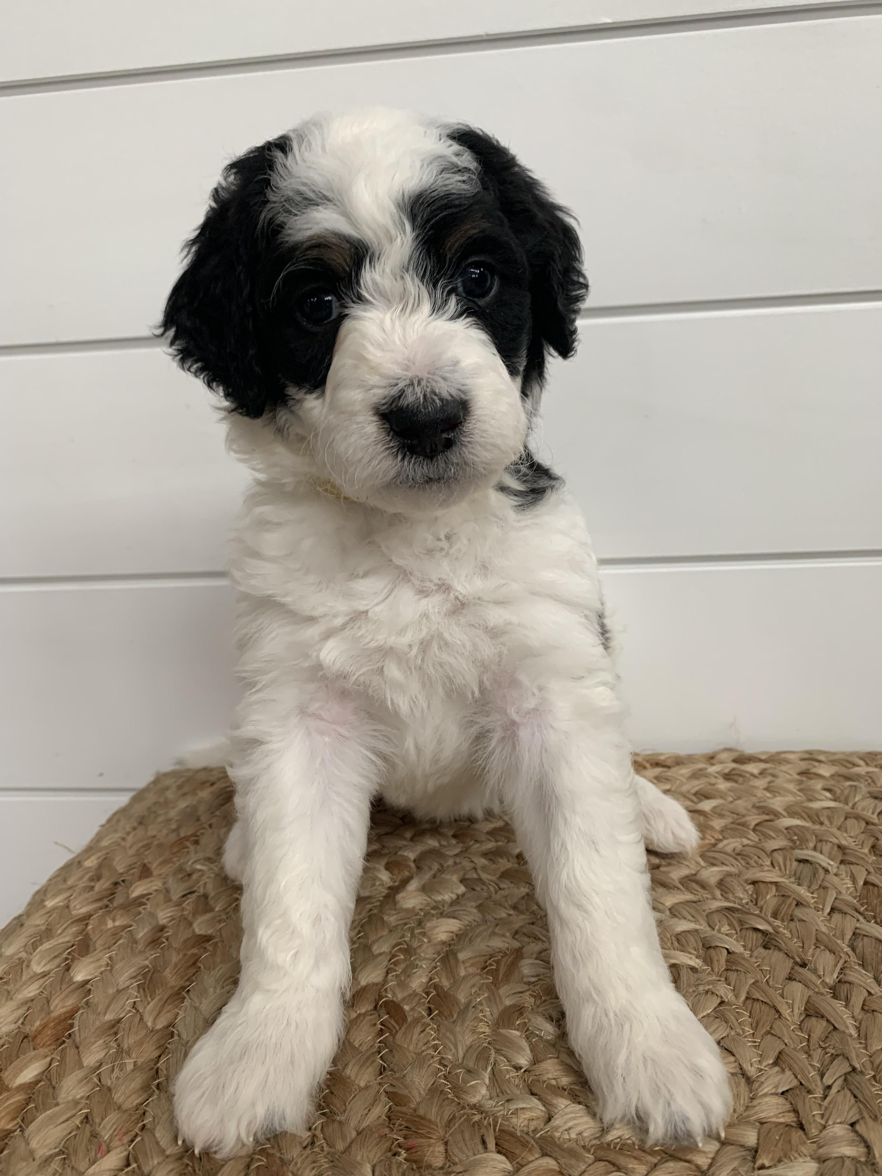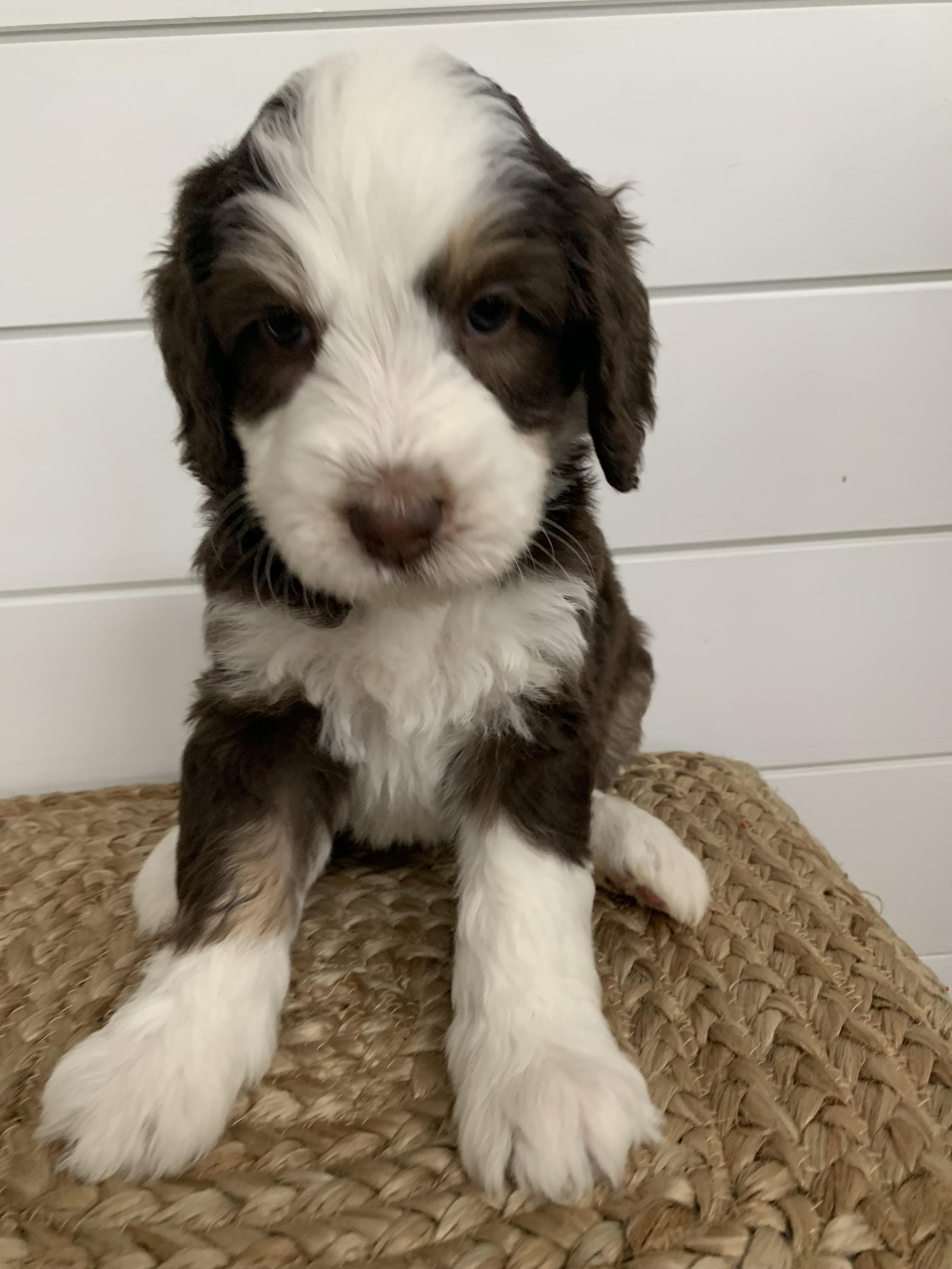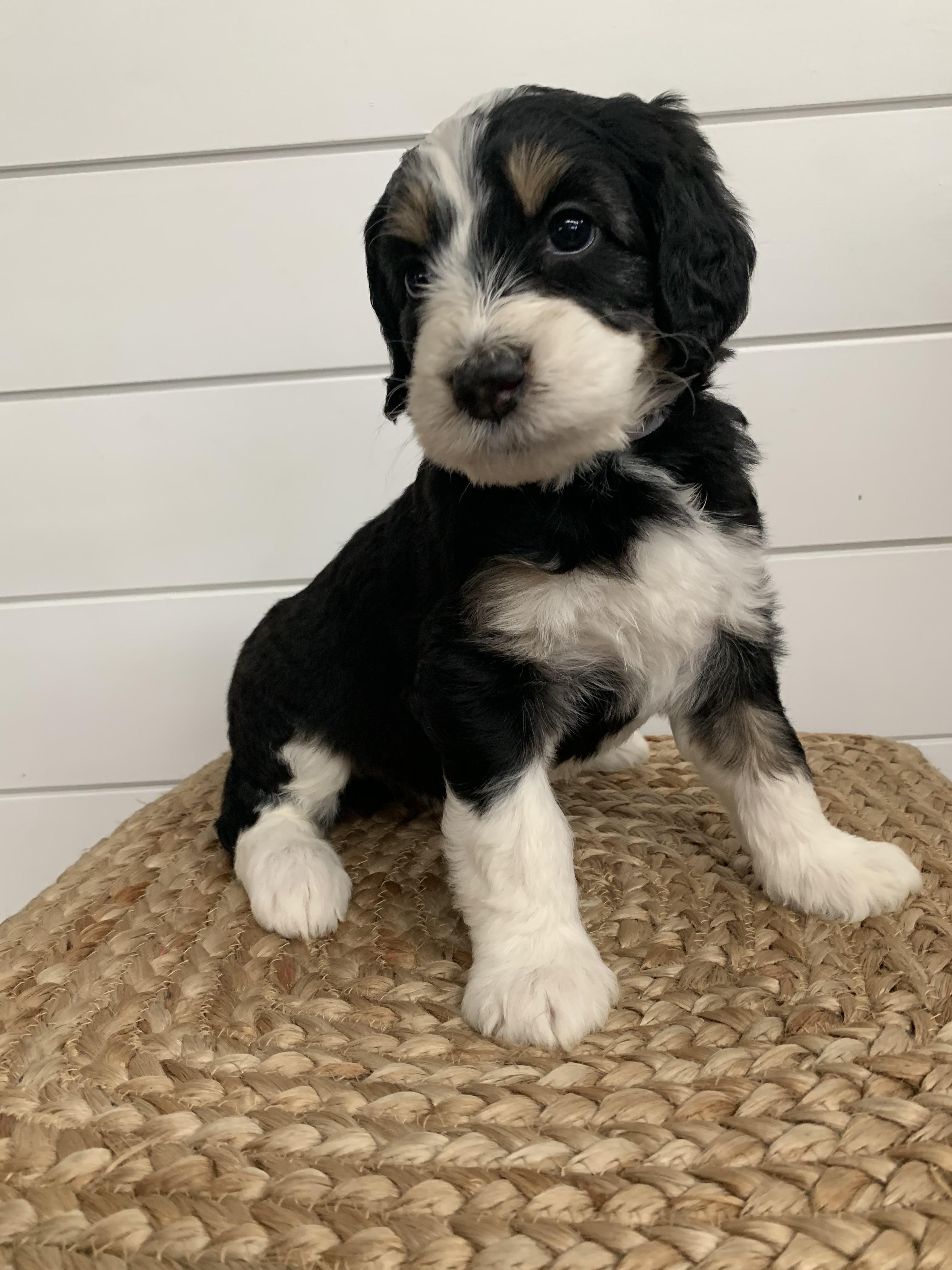 Our Bernedoodle puppies include brown and white, brown, sable, black and white, tri-color, phantom, blue merle, and merle. Poodle puppies include blue, brown, parti, and phantom. Colors will vary depending on the parent dogs.