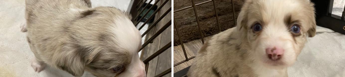 Puppy #5- Blue Merle boy full collar smaller in litter