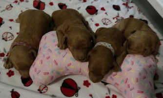 I'm Laura G., the breeder behind Sunset Maple Poodles located in Mc Henry, IL. At Sunset Maple Poodles, we breed red Standard Poodles for health, temperament, intelligence, and color. We have planned litters of Standard Poodle puppies several times a year. They are home raised, nurtured, and loved by us until they go to their new homes.