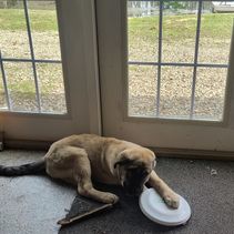Shiloh is very sweet and low key. She's stand-offish with most strangers, but loves children. She's a wonderful mother to the puppies, and has almost infinite patience.