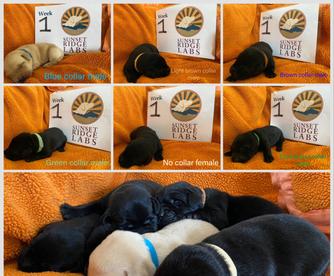 Our puppies include black, chocolate, and yellow. Colors will vary depending on the parent dogs.