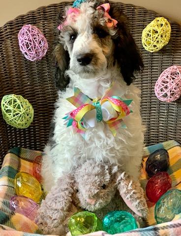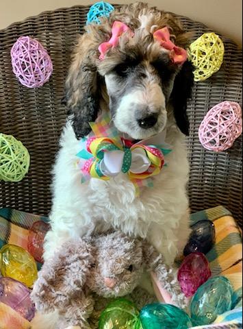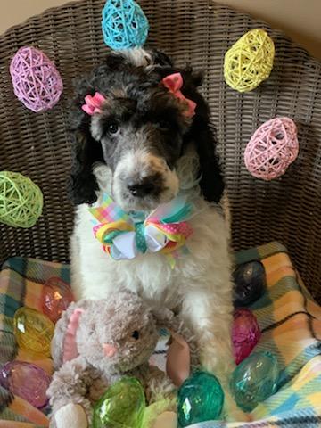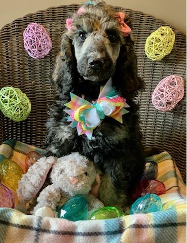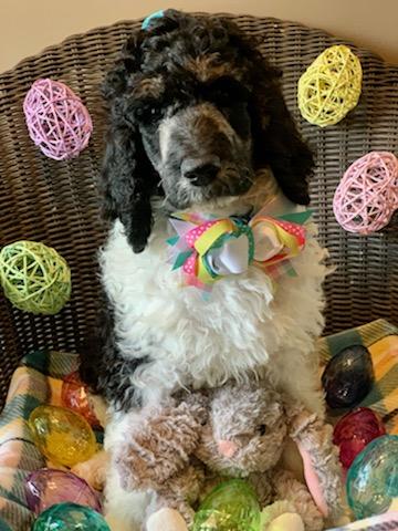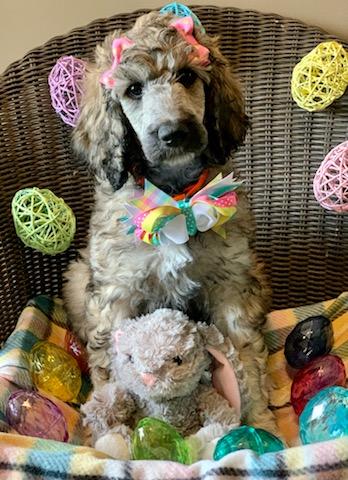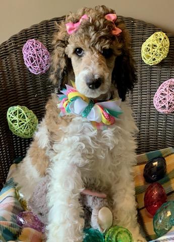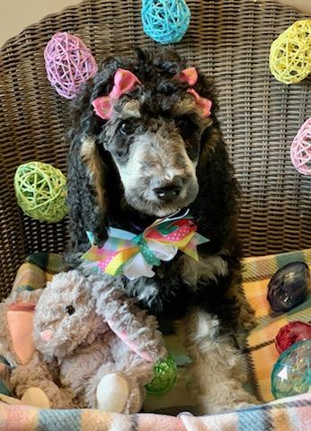 Dudley is a male Poodle. Carefully selected as a great representative of his breed, Laura decided to make him part of their program. Laura has passed Good Dog’s screening process, which involved a review of their breeding practices, environment, and the mental and physical health of their dogs.