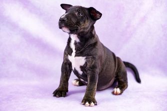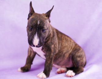Peppa Pig is a female Miniature Bull Terrier. Carefully selected as a great representative of her breed, Aidely decided to make her part of their program. Aidely has passed Good Dog’s screening process, which involved a review of their breeding practices, environment, and the mental and physical health of their dogs.