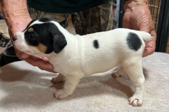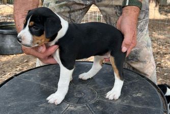 Cooper is a hunter’s dream. He loves water too. He will do anything you ask of him. He loves to hunt and to go. He likes to ride or run alongside the 4-wheeler. He’ll climb up a tree after a squirrel or raccoon. He loves people and other dogs. He’s a good good boy.
