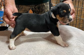 Melanie is a female Rat Terrier. Carefully selected as a great representative of her breed, Melanie decided to make her part of their program. Melanie has passed Good Dog’s screening process, which involved a review of their breeding practices, environment, and the mental and physical health of their dogs.