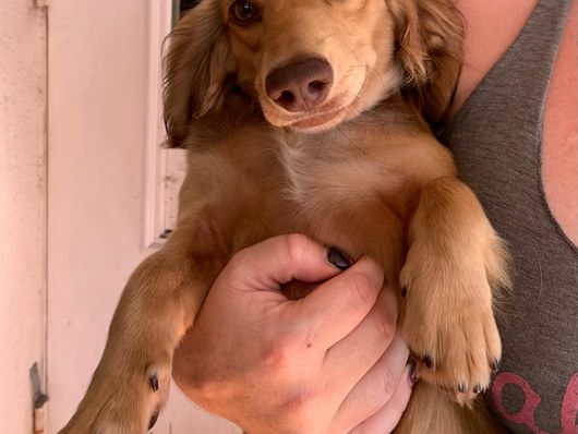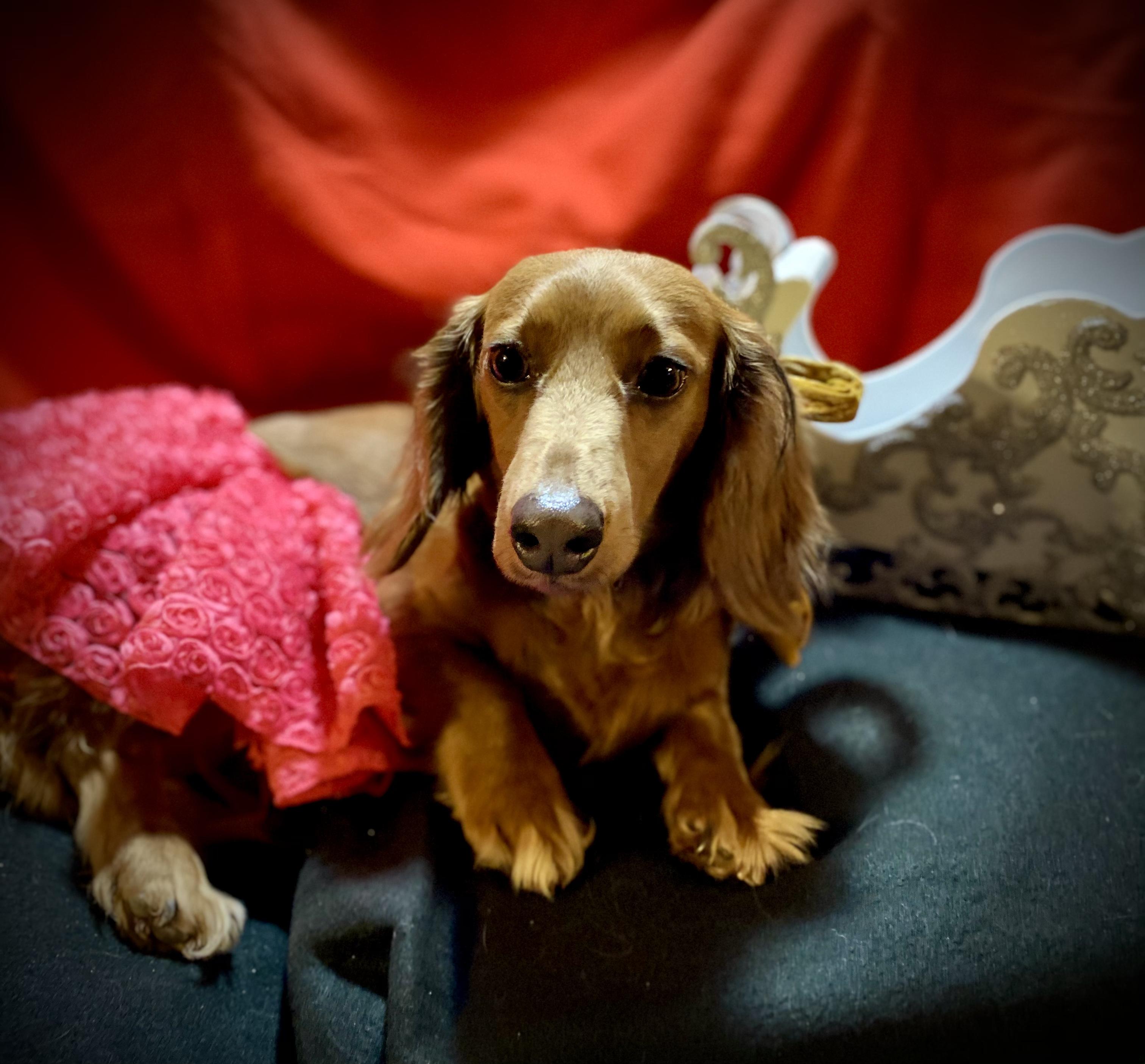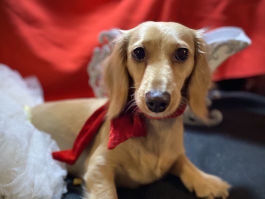 Scarlet is a female Dachshund. Carefully selected as a great representative of her breed, Cheryl decided to make her part of their program. Cheryl has passed Good Dog’s screening process, which involved a review of their breeding practices, environment, and the mental and physical health of their dogs.