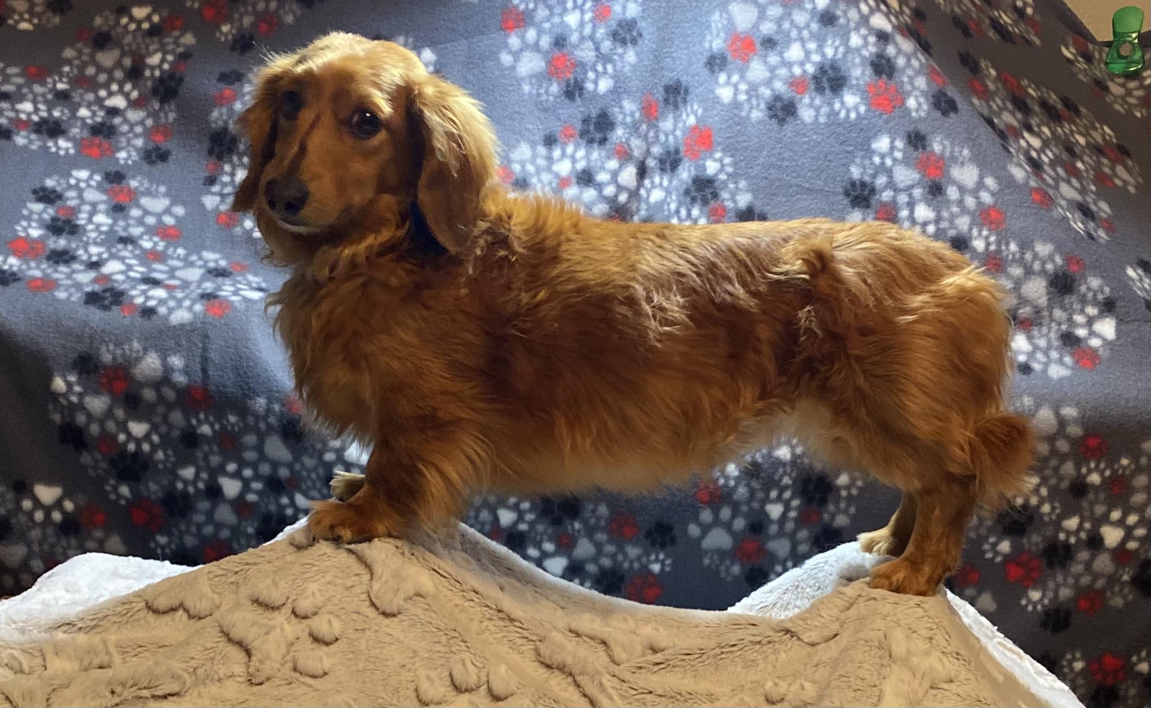 Caleb is a male Dachshund. Carefully selected as a great representative of his breed, Cheryl decided to make him part of their program. Cheryl has passed Good Dog’s screening process, which involved a review of their breeding practices, environment, and the mental and physical health of their dogs.