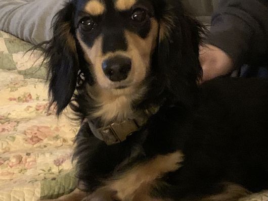 Murphy is a gentle soul. He is a true mini weighing in at 9 pounds. Beautiful black & cream long coat./