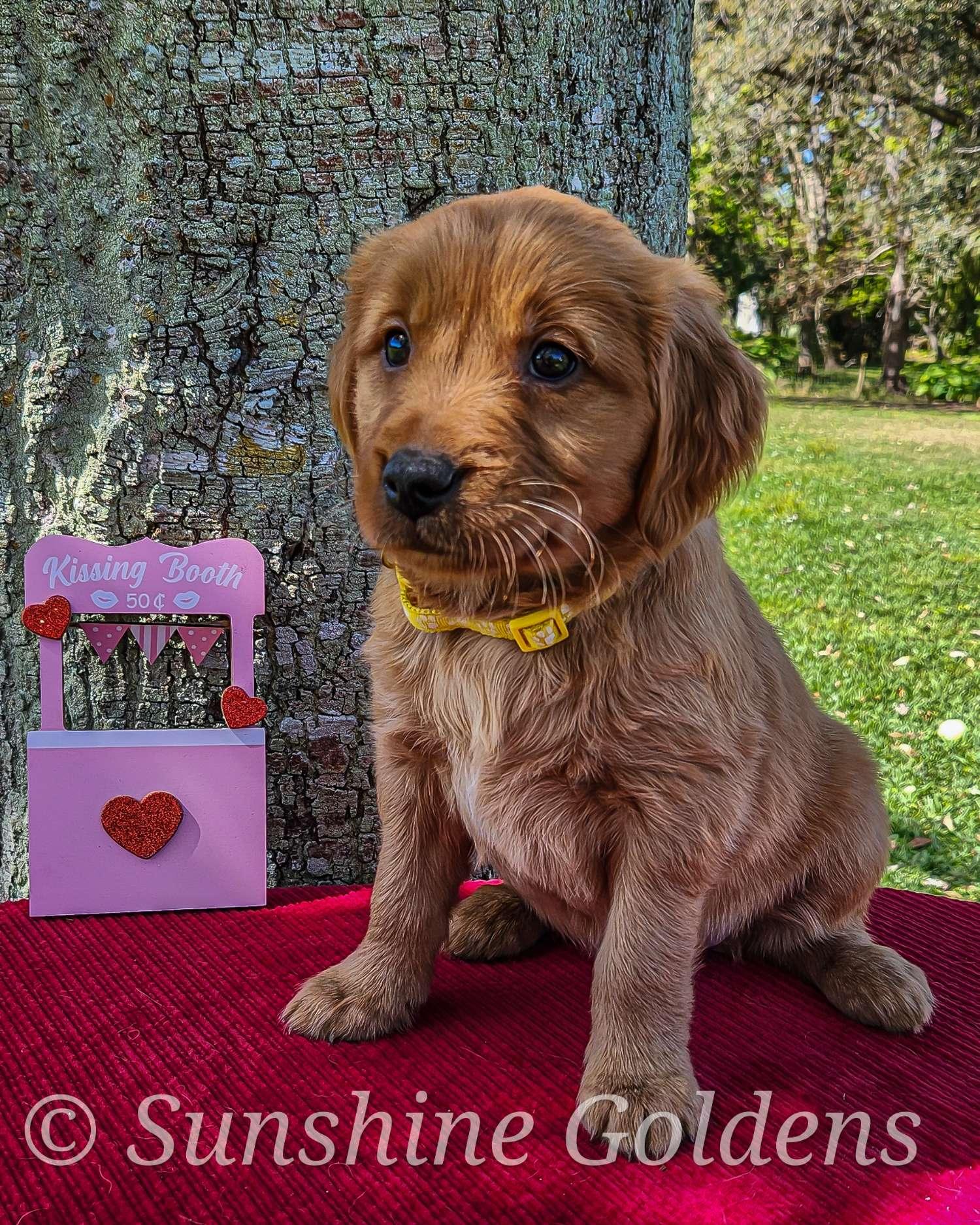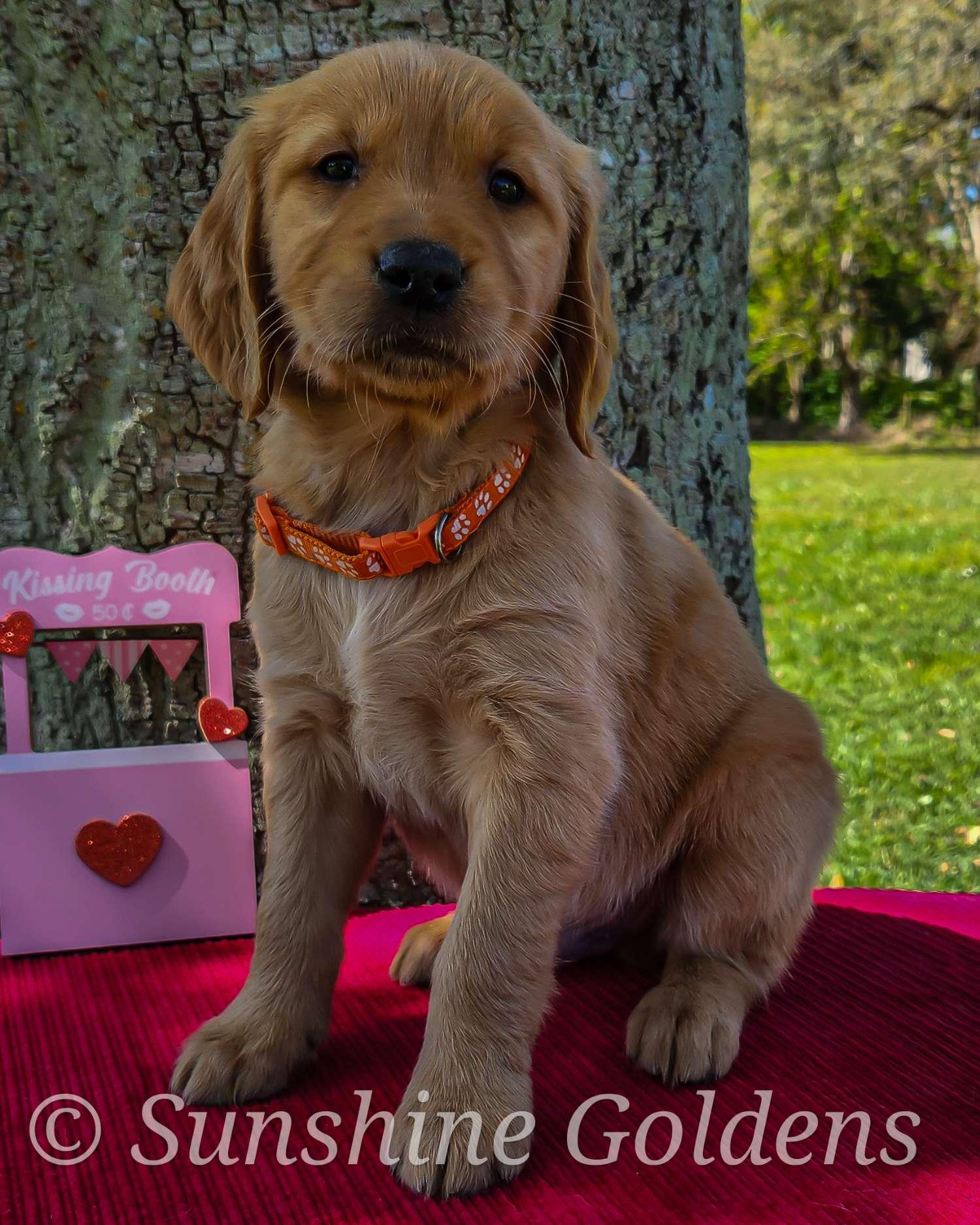 We had an amazing experience with Abigail and Sunshine Goldens! After losing our precious dog a few years ago, our family was ready to bring another furry friend into our home. We communicated with Sunshine Goldens asking questions and finding out more information… Abigail got right back to us and we had open communication throughout the whole process. We even did a virtual meeting since we lived a distance away and met the puppies via “Zoom.” We actually picked our pup because he came over and licked the phone while we were all talking! We were smitten! Abigail even offered to meet us halfway when the time came to get our sweet pup so we didn’t have to cover the entire distance—this was so thoughtful and helpful! We love our new golden, Blaze, and happy to know he came from a loving breeder who helped make this a seamless and positive experience!