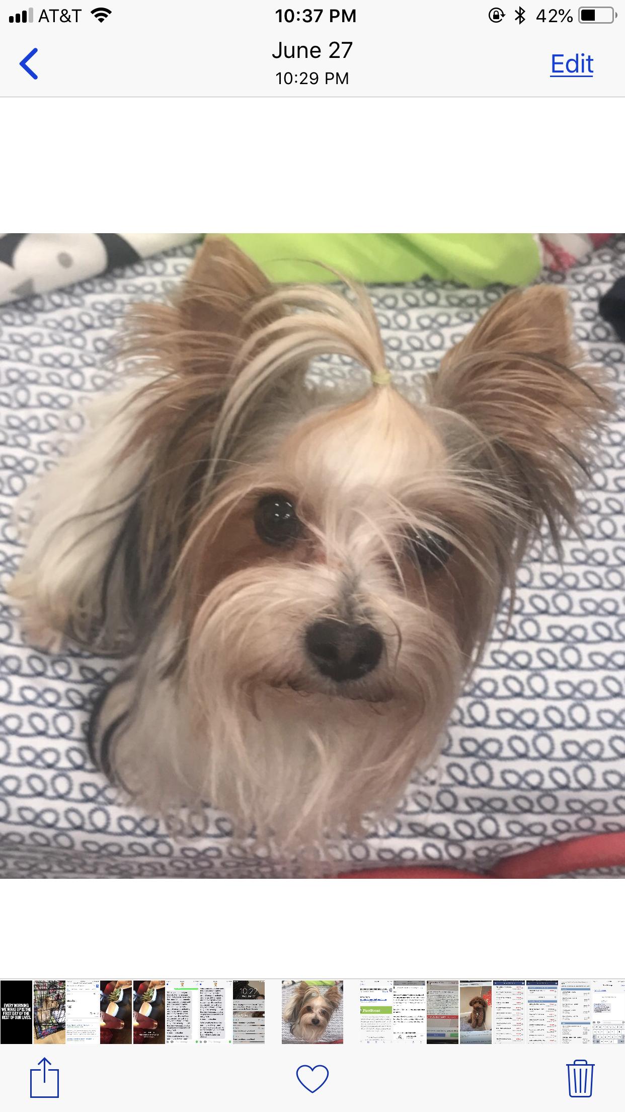 Meet our little chocolate Yorkie! Weighing in at just 4.5 pounds, he’s a shy but incredibly loving ball of fluff. With short legs, lots of hair, and the sweetest personality, he’s truly perfection in a tiny package.🐾🐾