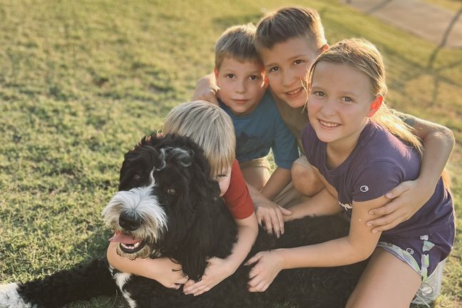 We do small-batch litters of one per year to be able to socially raise our pups with our family of young children. We also enjoy standard-sized doodles because they hold up well in families with kids and because of their versatility with those who enjoy the outdoors, much like our own family! You can buy a dog from a shelter or rescue and not know the history of that animal, but you can rest assured that our dogs will always be well-loved and properly socialized to be able to join any loving owner.