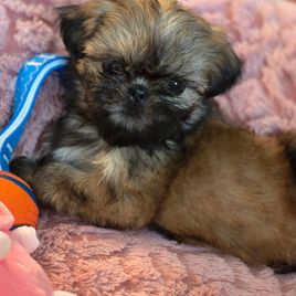Zoey is a female Shih Tzu. Carefully selected as a great representative of her breed, Danielle decided to make her part of their program. Danielle has passed Good Dog’s screening process, which involved a review of their breeding practices, environment, and the mental and physical health of their dogs.