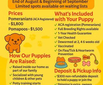 I have been breeding Pomeranians since 2009 & Cavapoos since 2020 They have been my favorite breed since I was a child and have grown up with them all my life. They live in our home kennel free. Small hobby breeder and only have a handful of Poms.