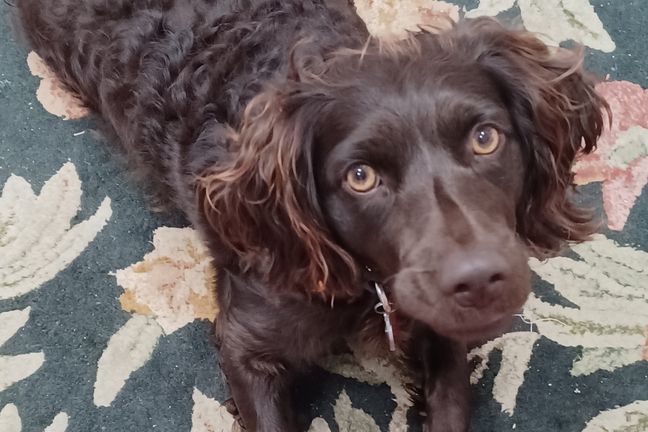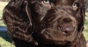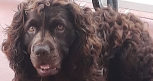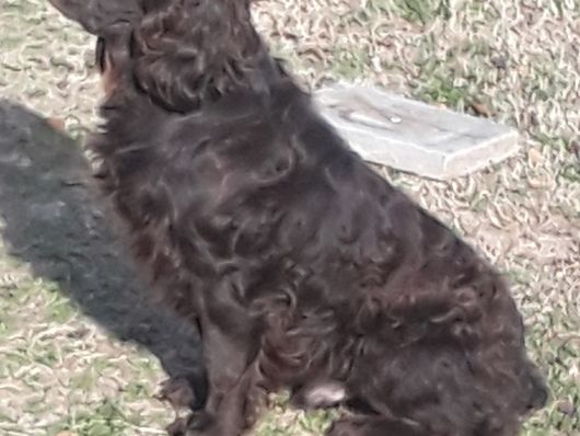 Soft waves and curls when his hair is long. Loves to be groomed. Excellent swimmer and retriever. Excellent hunting companion. Perfect example of a Boykin Spaniel...sweet face.