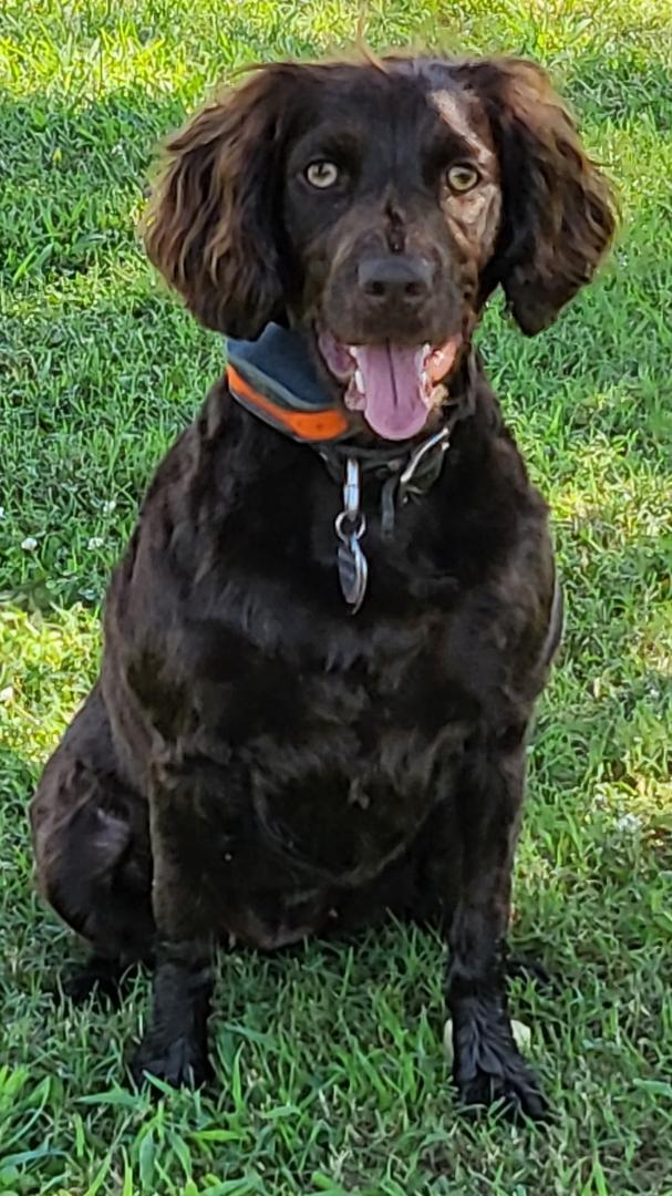Kate is a perfectly proportioned Boykin Spaniel with a sweet face, well positioned ears, bright green-gold eyes and a magnetic personality. Energy to spare. Loves her frisbee and is very birdy...will even chase birds in flight across the yard. All health clearances. From an outstanding bloodline. She is BSS, AKC and UKC registered.