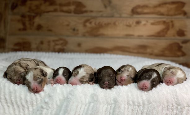 We socialize our pups to anything and everything indoors and outdoors on the ranch! This makes for such well-rounded pups! Our commitment is to provide you with a professional and friendly puppy-buying experience; and that includes always having responsible practices when it comes to breeding, training, and rehoming our puppies. We pride ourselves on helping all of our clients find the right fit for their needs and lifestyle. We are passionate about Aussiedoodles, and our love for these dogs shines through in every aspect of our breeding program.