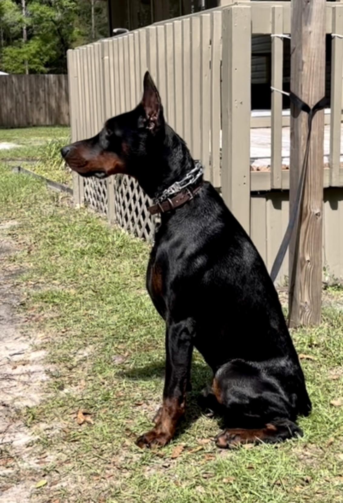 Kryptonite is a male Doberman Pinscher. Carefully selected as a great representative of his breed, Charles decided to make him part of their program. Charles has passed Good Dog’s screening process, which involved a review of their breeding practices, environment, and the mental and physical health of their dogs.