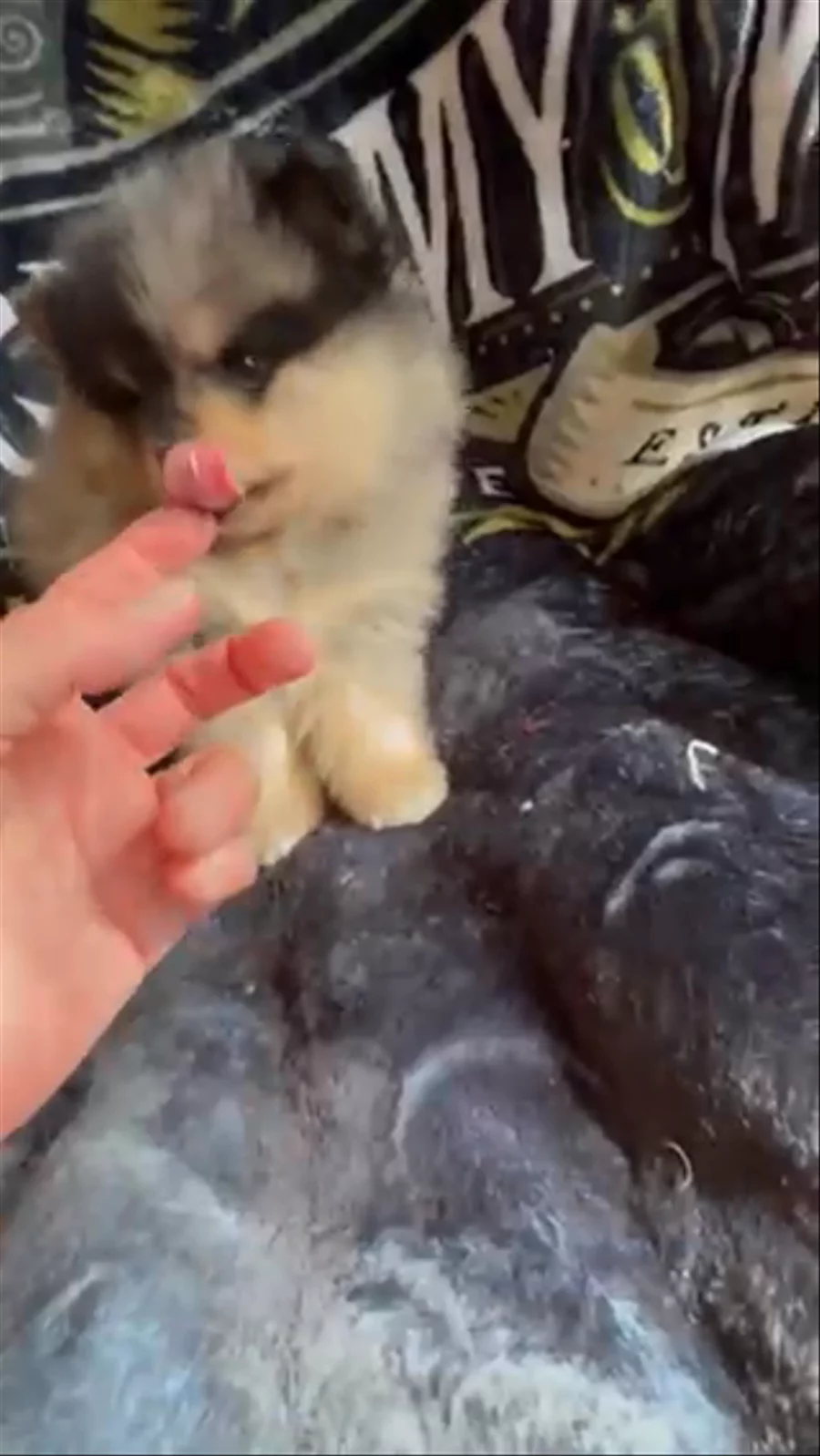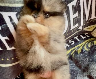 This is Fiona… she is a very tiny micro Pomeranian brindle girl. She is currently under assessment, but will be made available soon. Please reach out to me if you would like to get on her waitlist.
