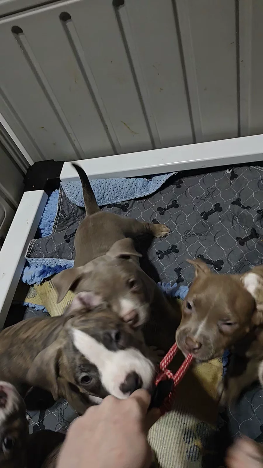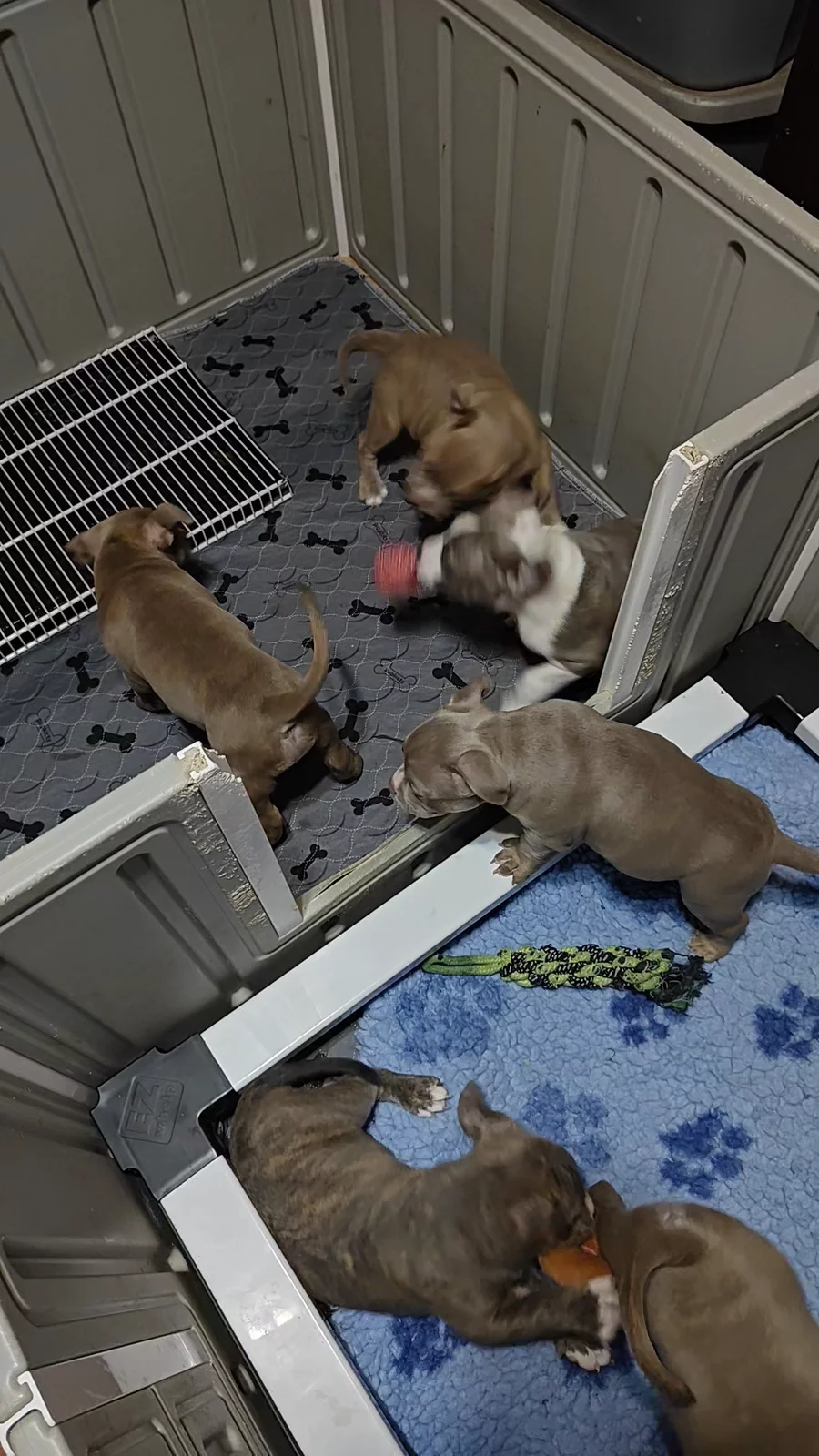 Pups are 6 weeks tomorrow, they were dewormed, nails clipped and weighed. 1 m Centauri 8.99 lbs 2 m Antares 8.07 lbs 3 f Ursa 7.5 lbs 4 f Carnelian 7.03 lbs 5 m Beryl 9.24 lbs 6 f Citrine 8.16 lbs #americanbullypuppies #puppies #puppiesdaily #ukcamericanbully #superstes_guard