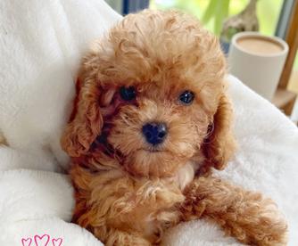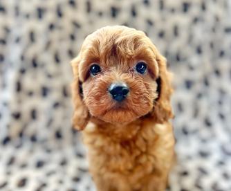 Our Goldendoodle puppies are red. Cavapoo puppies include black and tan and red. Colors will vary depending on the parent dogs.