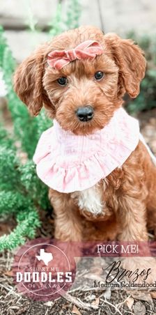 Our Bernedoodle puppies are standard size. Goldendoodle puppies include petite, miniature, and medium sizes. Sizes will vary depending on the parent dogs.