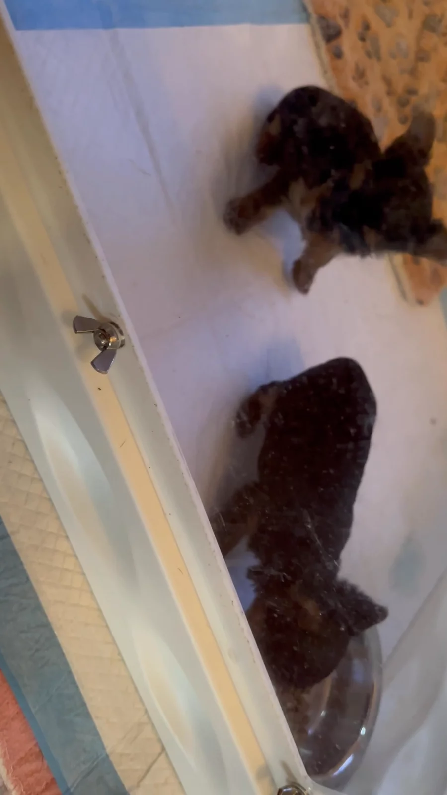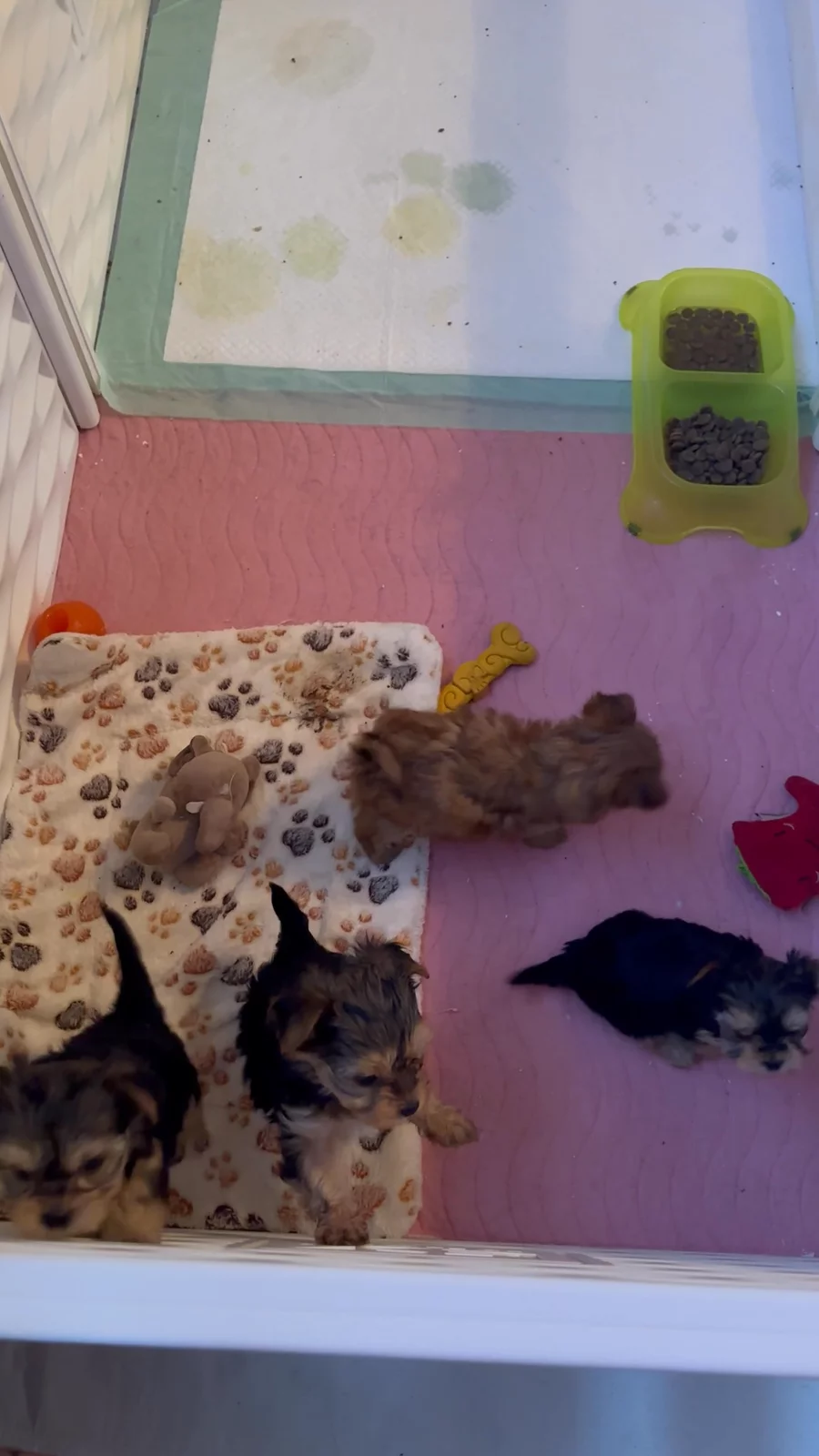 Yorkies 🩷💙 starting to explore & sniff at the kibble in a few days they should start eating